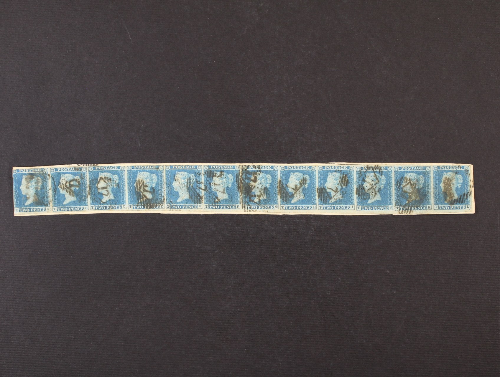 1841 zn. SG. č.14, TWO PENCE BLUE modrá - vodorovná 12ti- páska z tiskové desky 3, písmena TA-TL, razítko číslo 17; bezvadná kvalita, atest Karl Louis, kat. 3.200 GBP, páska přes celý arch