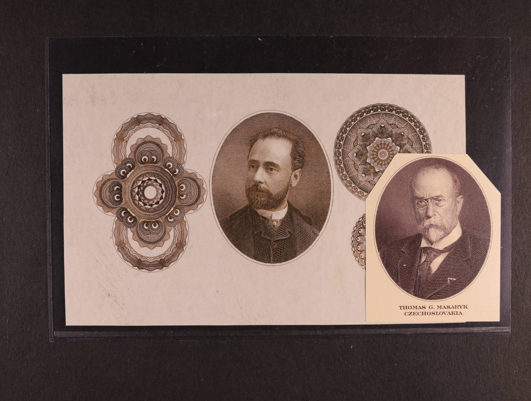 2 ks rytin tiskárny ABNco, 1x T.G.M, 1x giloše + portrét