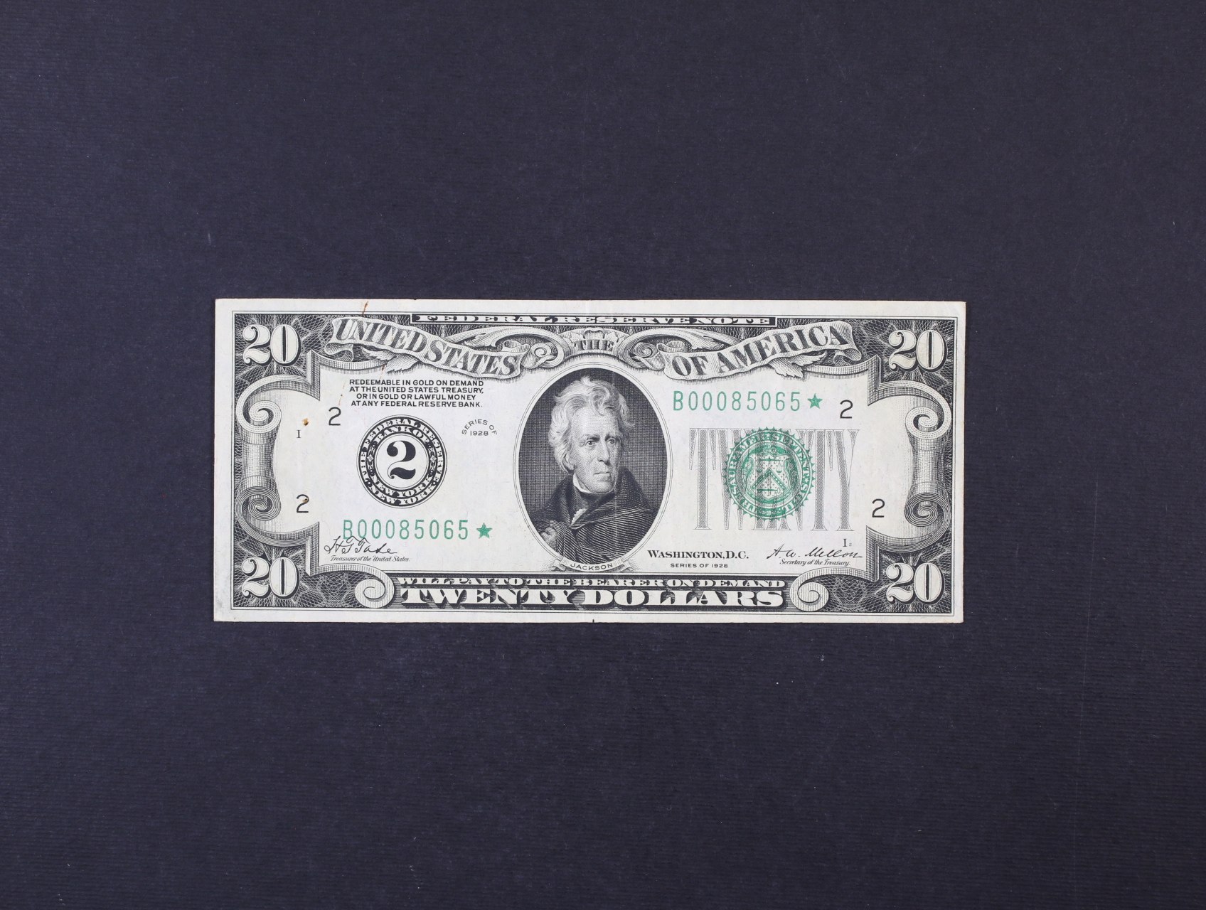 20 Dollars 1928 (2 New York / New York) * replacement, Federal Reserve Note, tmavě zelená pečeť, Pi. 422