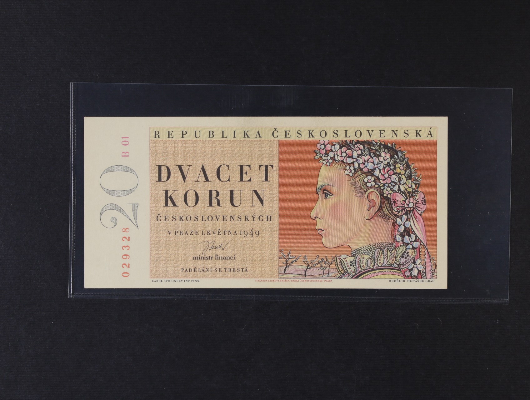 20 Kčs 1.5.1949 série B 01, Ba. 83, Pi. 70b, první série