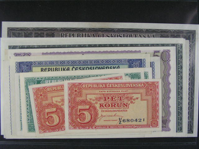 5 Kcs (4x), 10 Kcs (5x), 20 Kcs (3x), 50 Kcs (2x), 100 Kcs (3x), 1000 Kcs 1945, ruzne serie, Ba. 70 - 74, 75