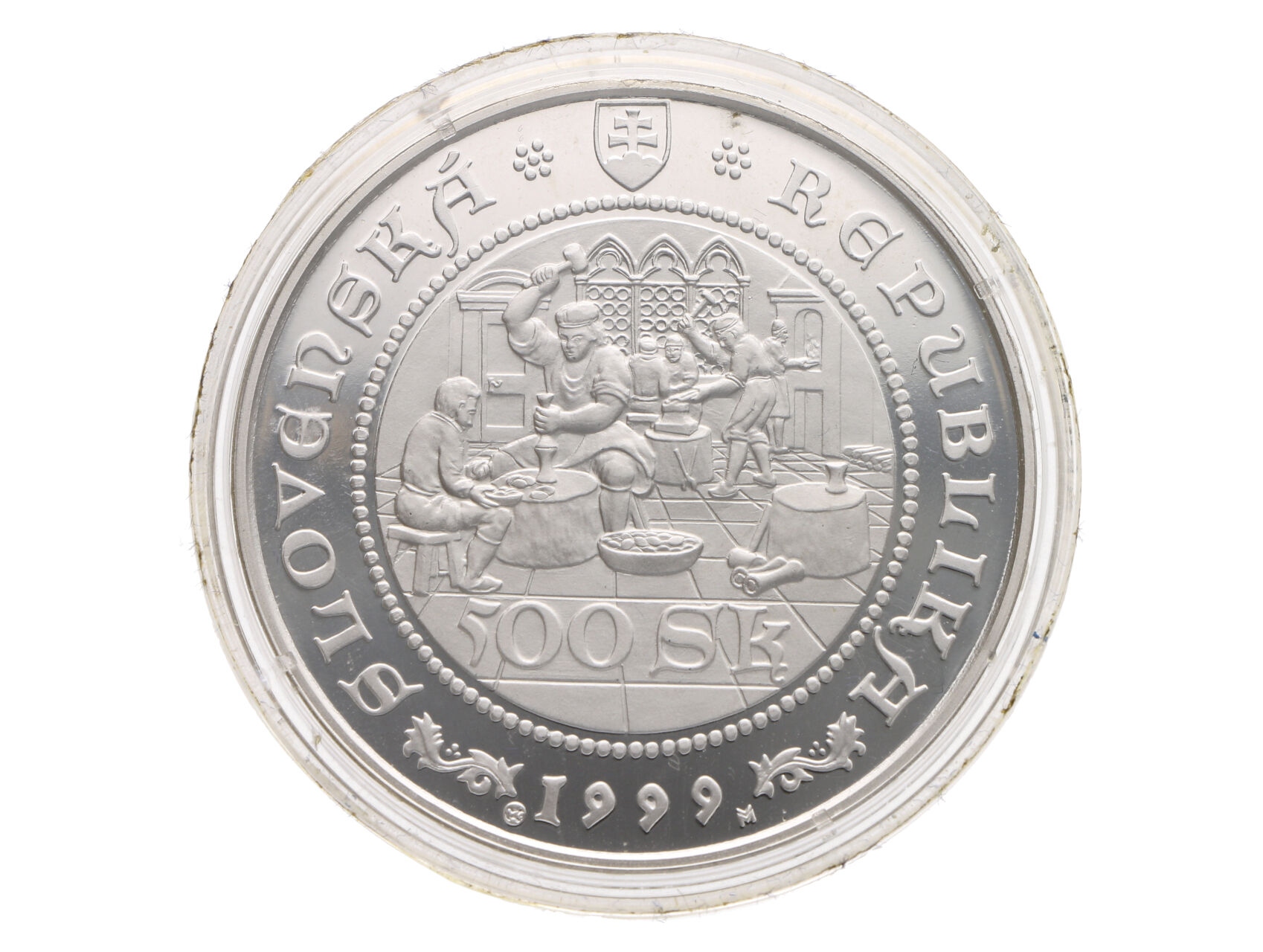 • 500 Sk 1999 Ražba prvních tolarových mincí, etue a certifikát, kvalita proof, N MPSK 28
