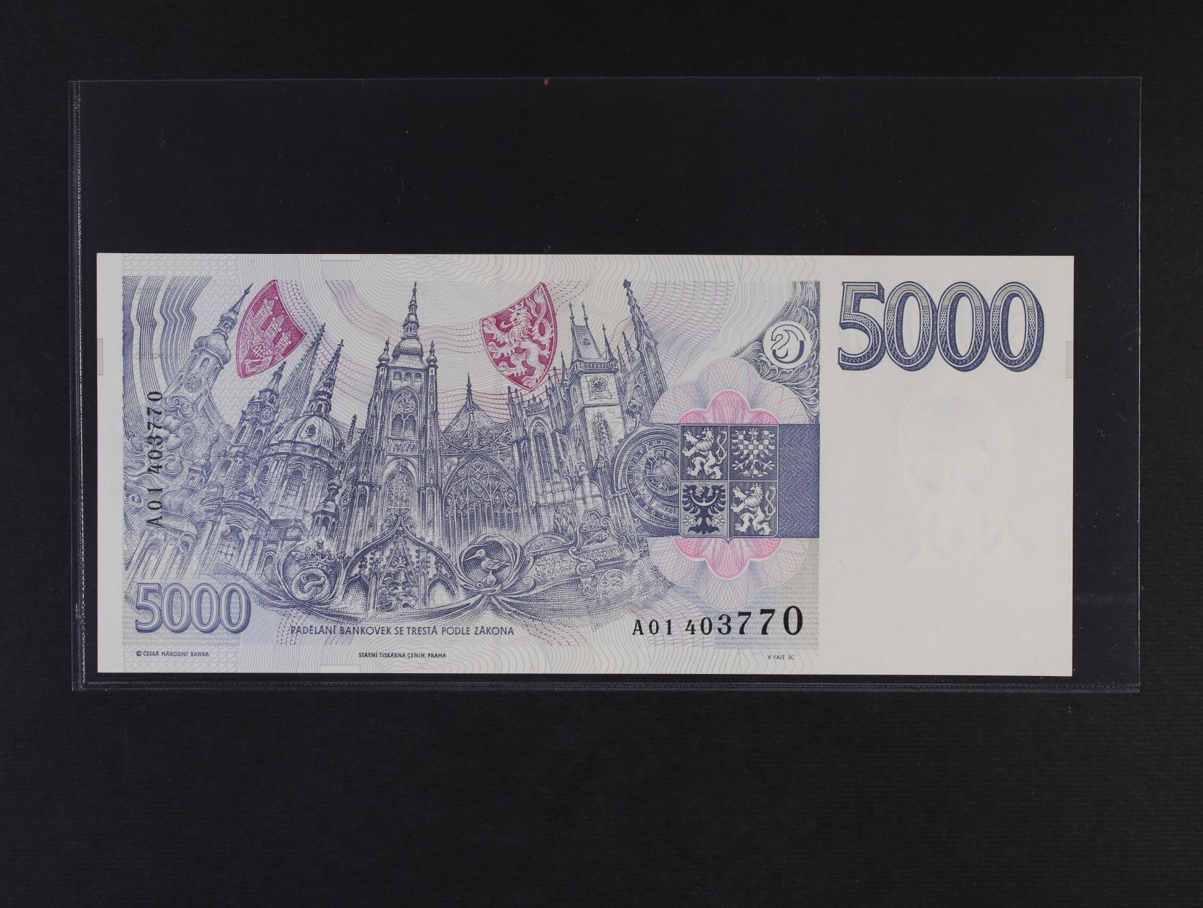 • 5000 Kč 1993 série A 01, Ba. CZ 9, Pi. 9a, první série