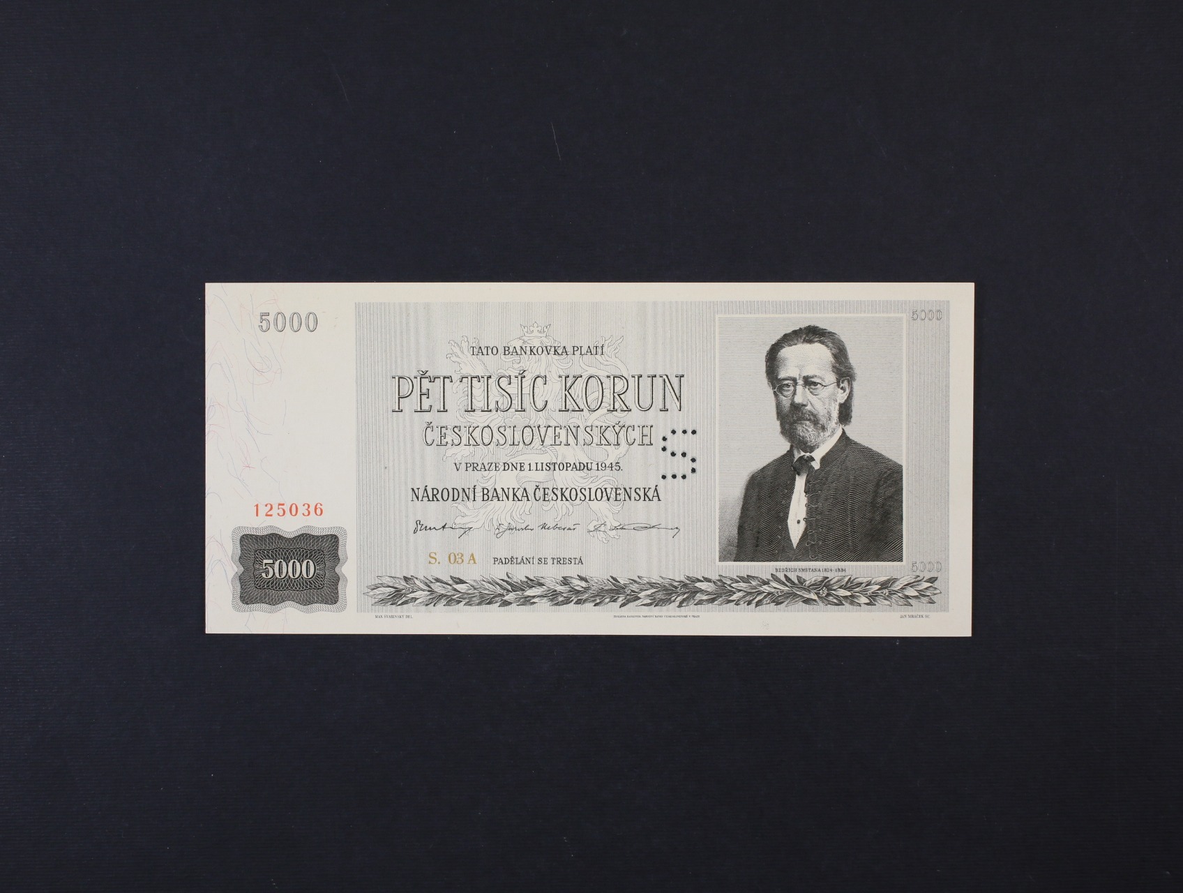 5000 Kčs 1.11.1945 série 03 A, perf. "S", Ba. 79, Pi. 75s, He. 80a S3