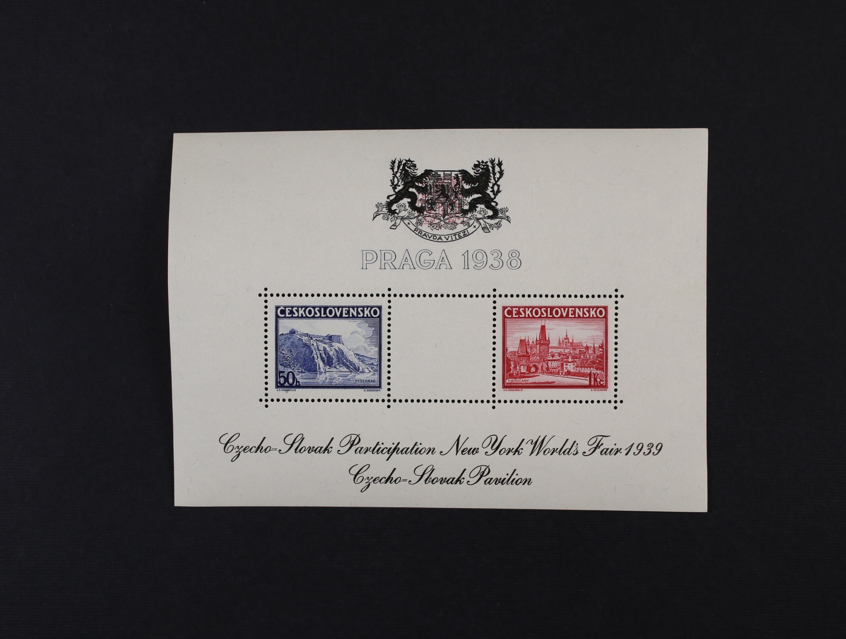 • A č. 342/343 s černým přetiskem k výstavě NEW YORK 1939 s chybným nápisem Czecho - Sbovak (namísto Slovak), zajímavé