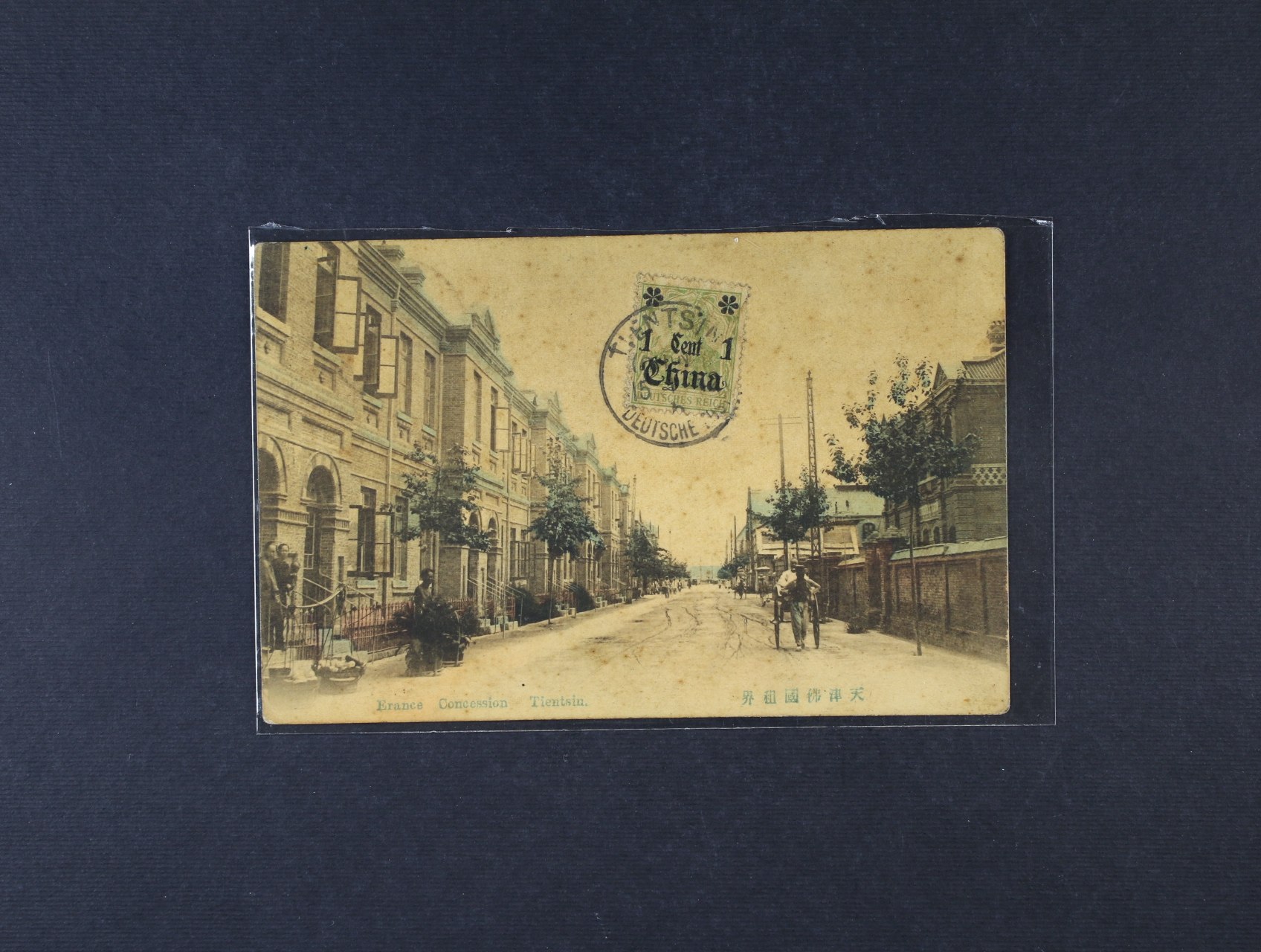 bar. pohlednice Tientsin zaslaná v místě, frank. na přední str. zn. 1c (Germania s přetiskem 1cent China) s denním raz. TIENTSIN (China) 15.1.12 DEUTSCHE POST, zajímavé