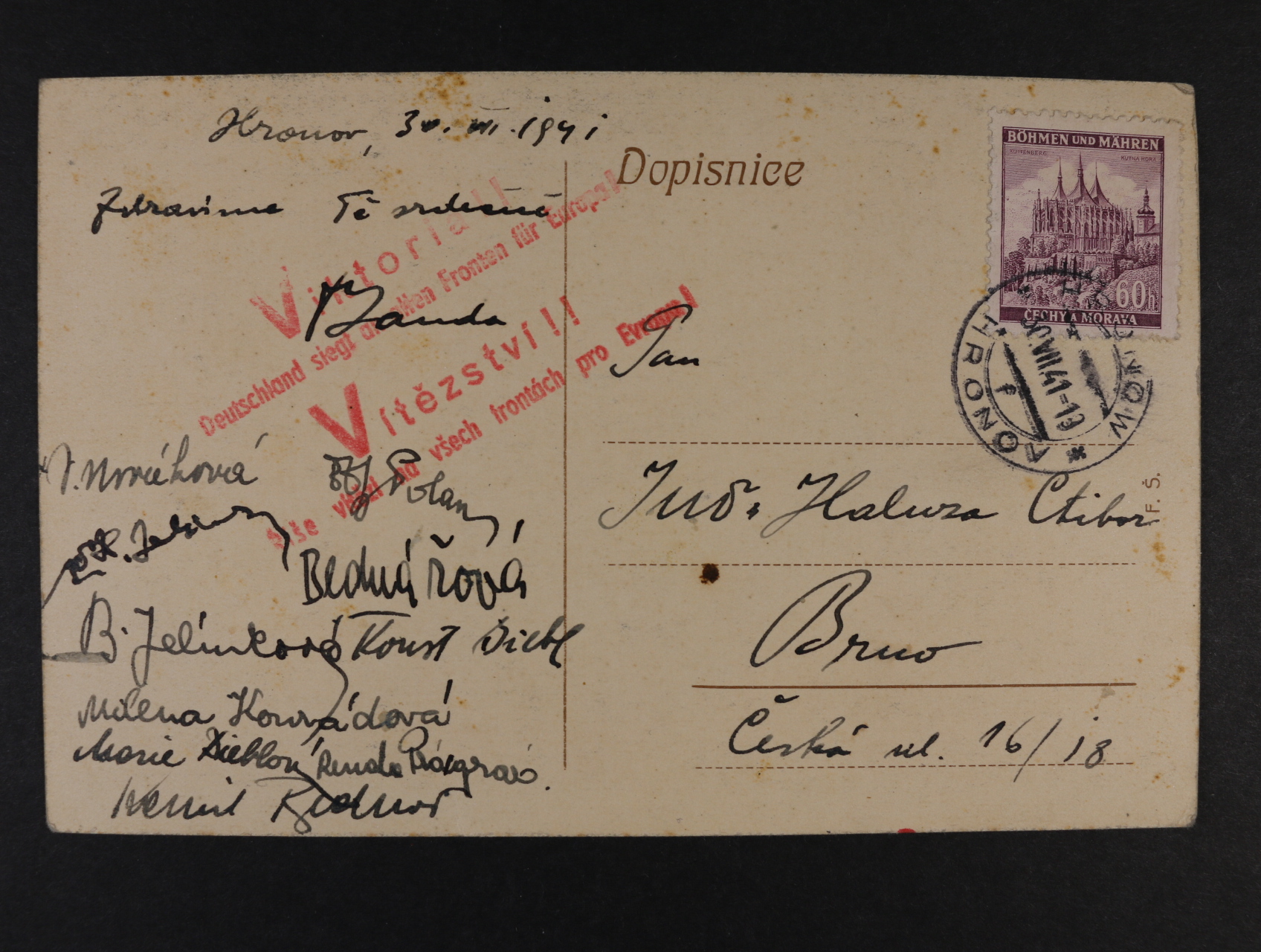 Biebel Konstantin - 1898 - 1951, lyrický básník pohlednice s vlastnoručním podpisem z r. 1941