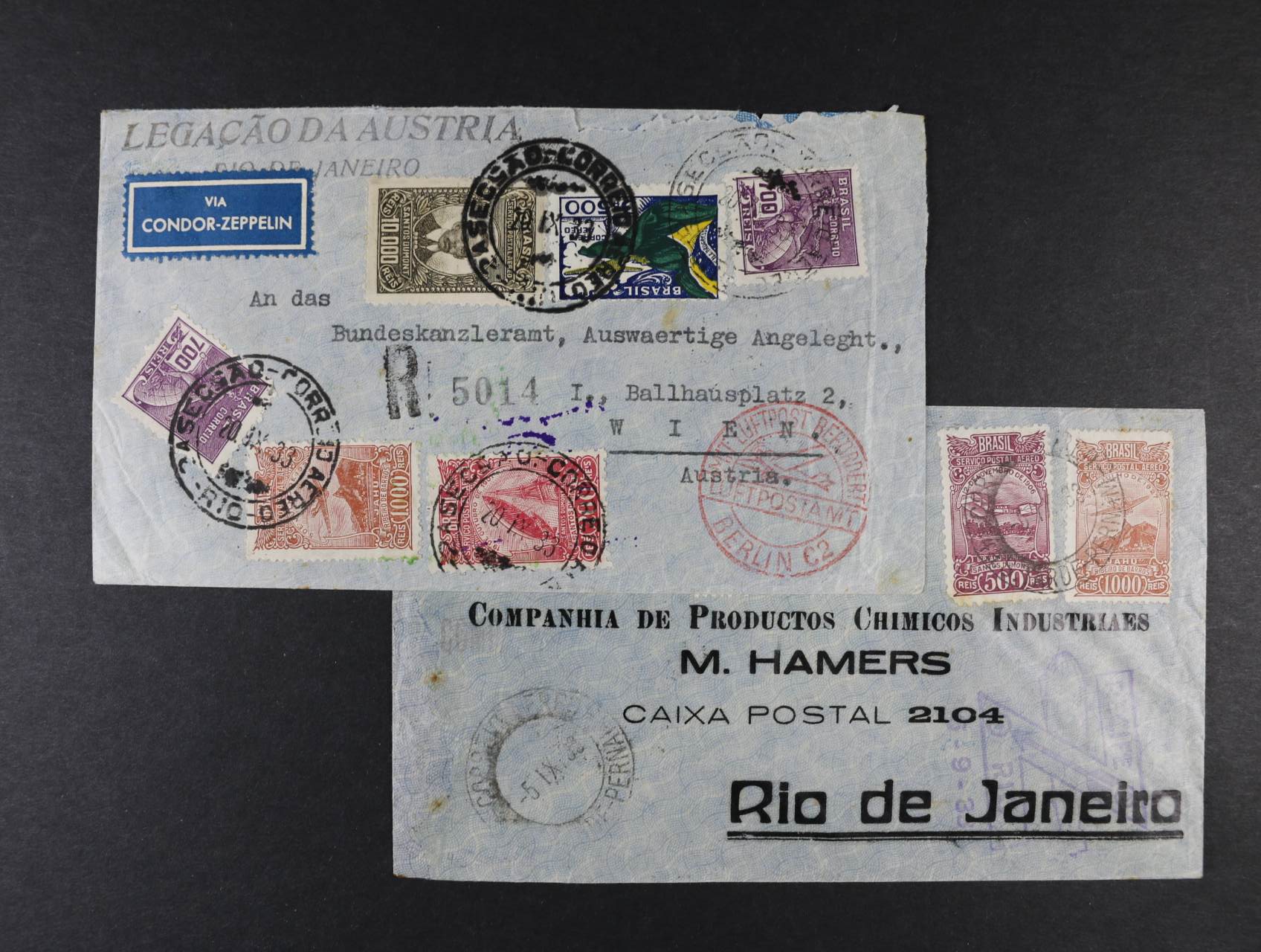 celistvost z Brazílie do Vídně, resp. do Rio de Janeira, pestré zajímavé frankatury, podací + průch. raz., let. kašet, přích. raz., zajímavé k prohlédnutí