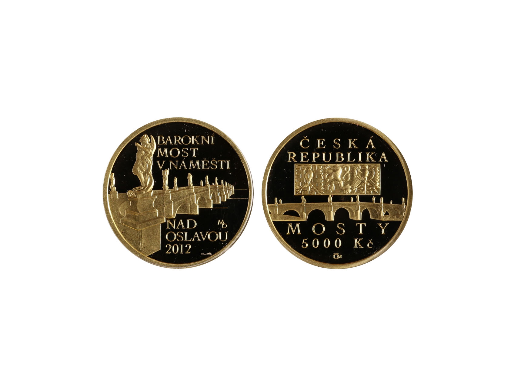 Česká Republika 1993 - 5000 Kč 2012 barokní most v Náměšti nad Oslavou, náklad 9000 ks, 15,55g, etue, certifikát, bezvadný stav, kvalita PROOF