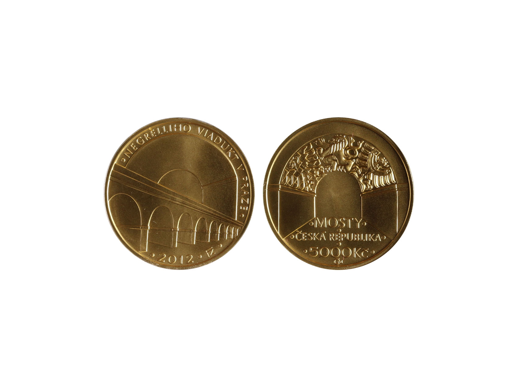 Česká Republika 1993 - 5000 Kč 2012 Negreliho viadukt v Praze, náklad 3900 ks, 15,55g, etue, certifikát, bezvadný stav, kvalita b.k.