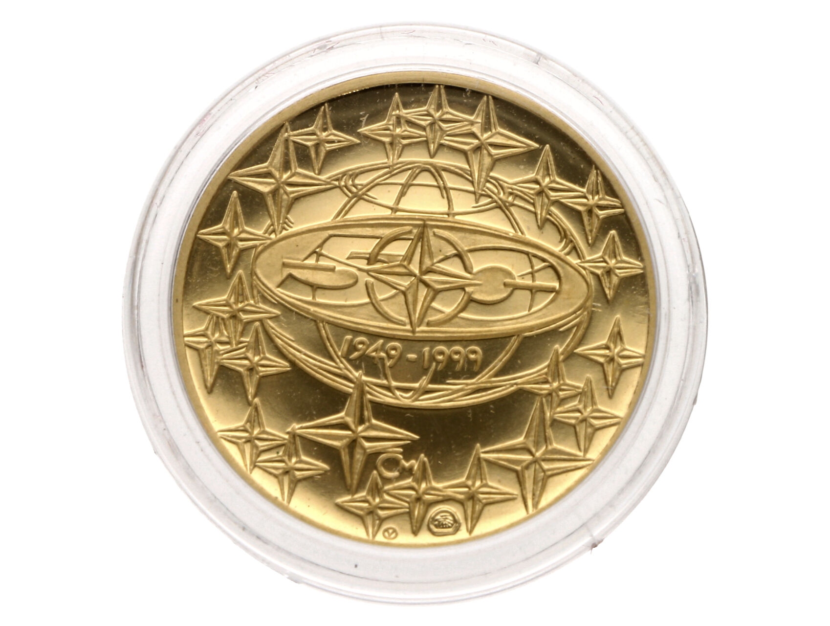 Česká republika 1993 - AU medaile 1999, ke vstupu do NATO, Au 0,999, 7,78g (1/4 UNZ), průměr 23mm, autor ak. soch. Vladimír Oppl, ražba ČM, náklad 500 ks, etue, certifikát, kvalita PROOF