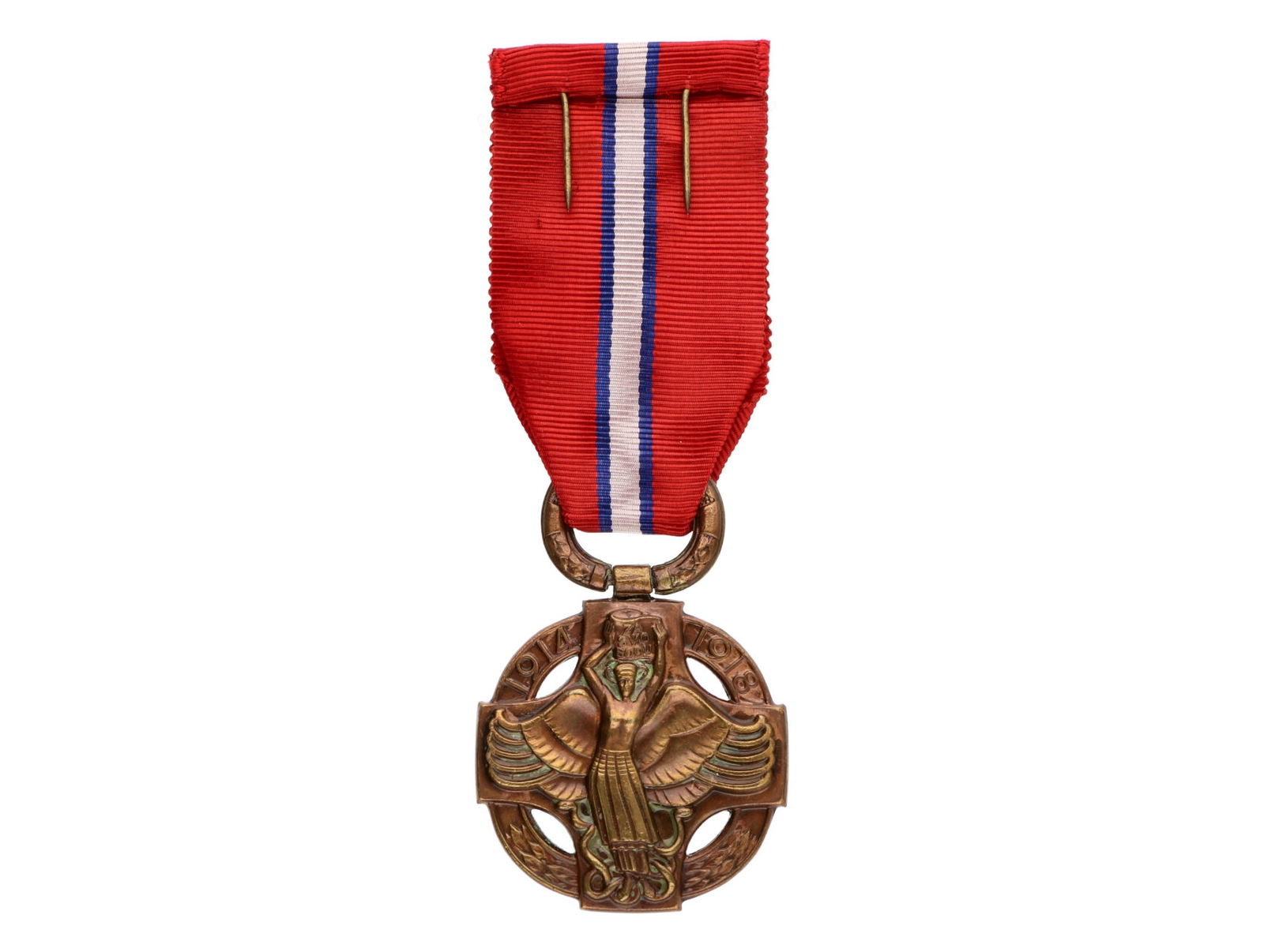 • Československá revoluční medaile, lehká varianta bez podpisu medailéra, tmavší bronz, se štítkem ALSACE, ARGONE a 22 na stuze, VM6