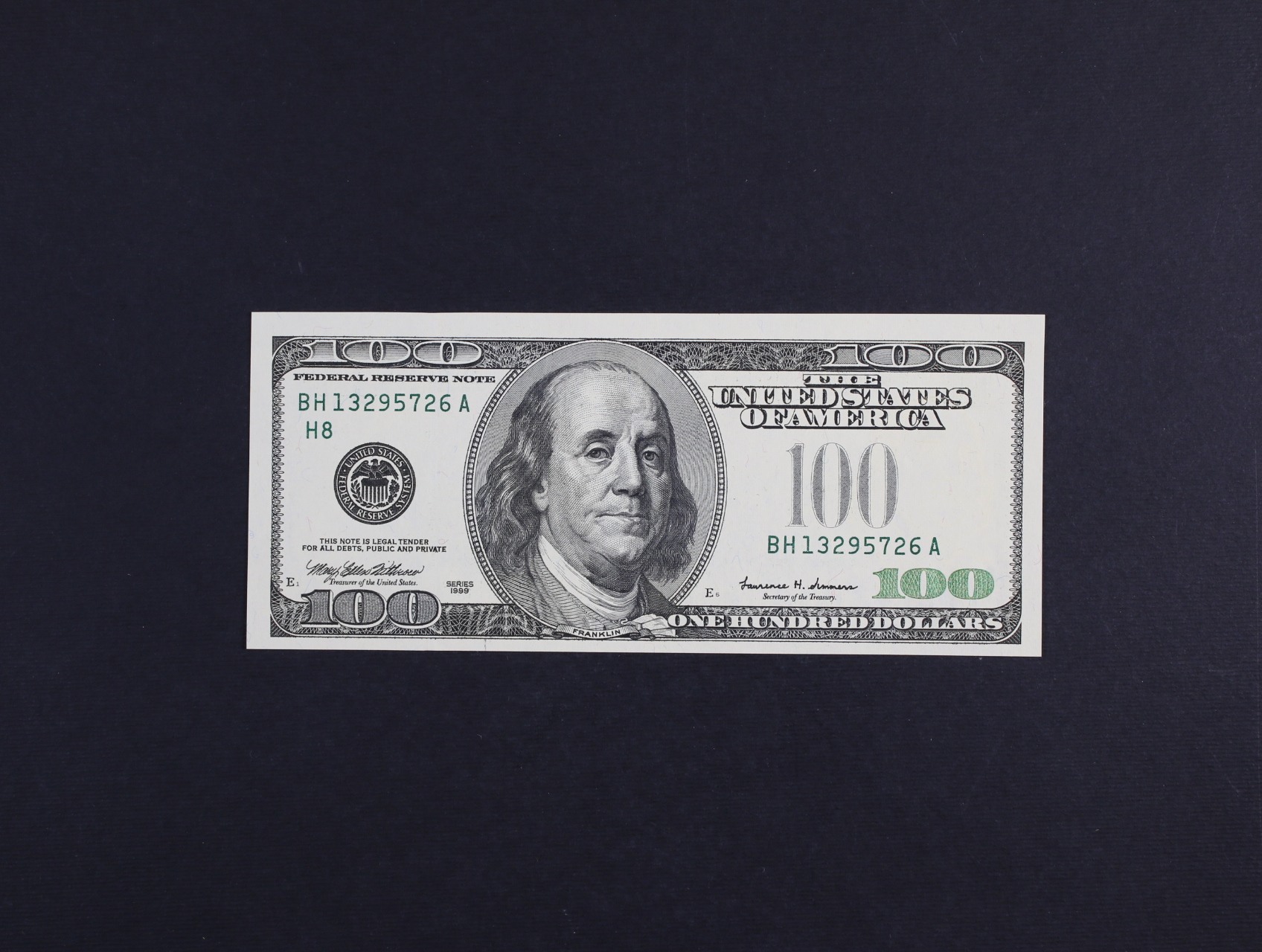 chybotisk, 100 Dollars 1999 (H8) s chybějícím tiskem zelené pečetě, Pi. 508