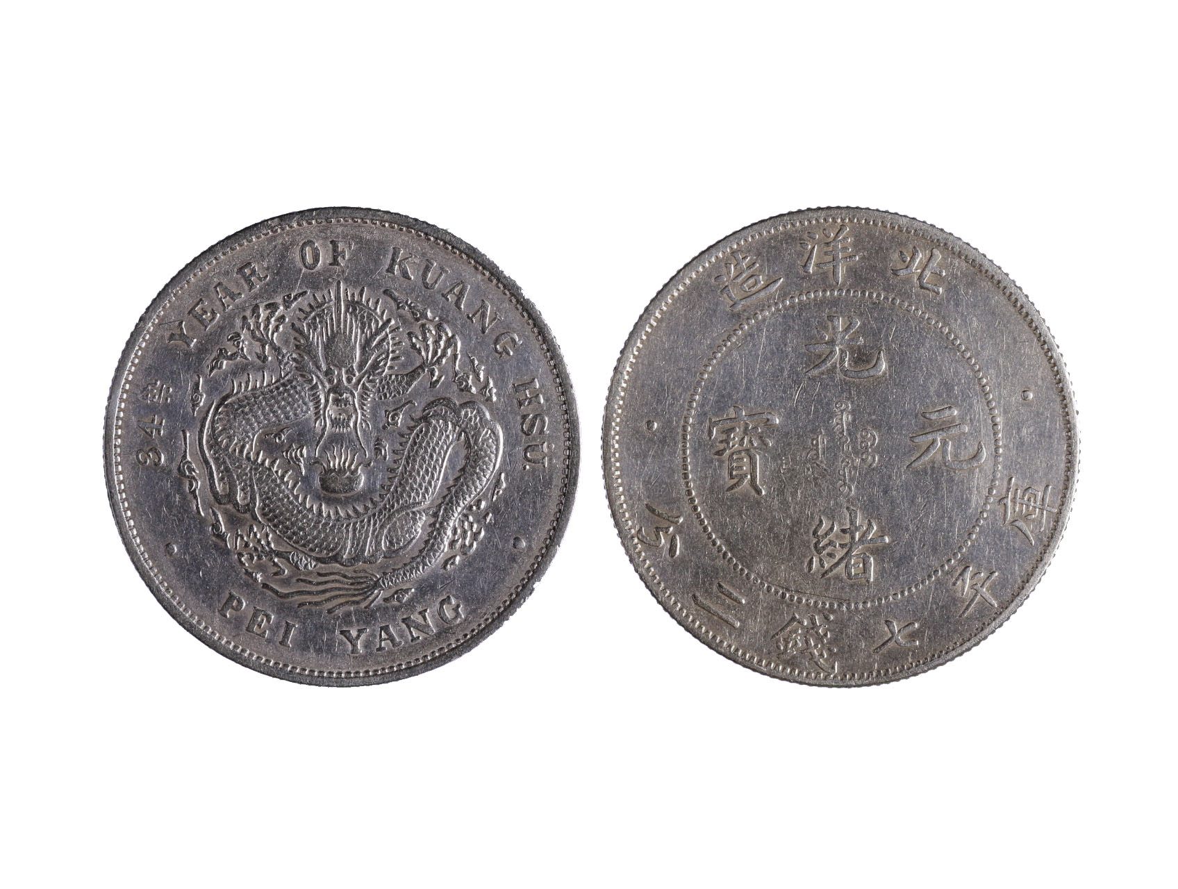 • Čína, Te Tsung (Kuang-sü) 1875-1908 - Dollar, rok 34 (1908), provincie Chihli, menší číslice 34, KM.73.3