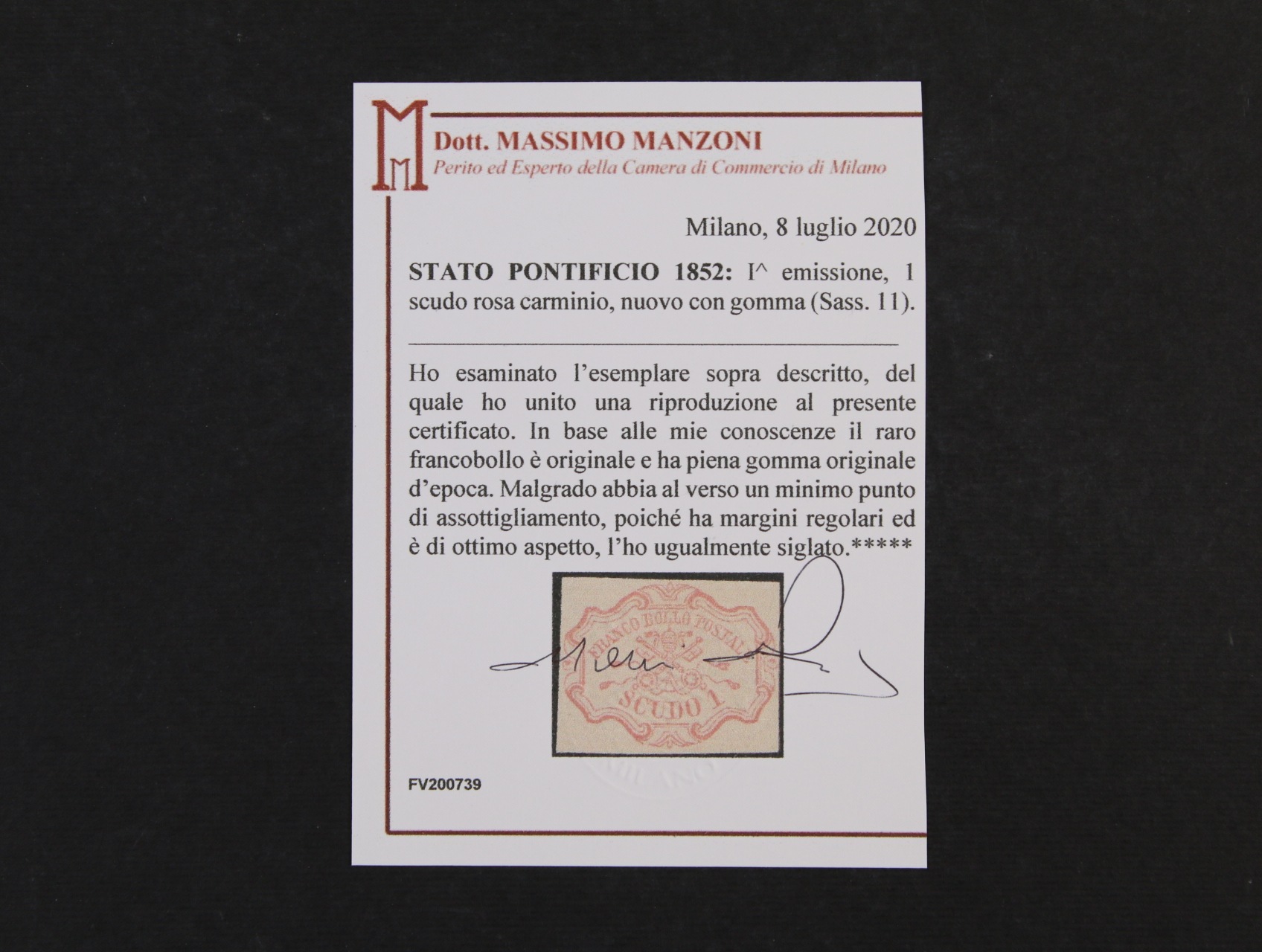 • Církevní stát - zn. Sas. č. 11, zk. a atest Manzoni, kat. Sas. 7500 EUR