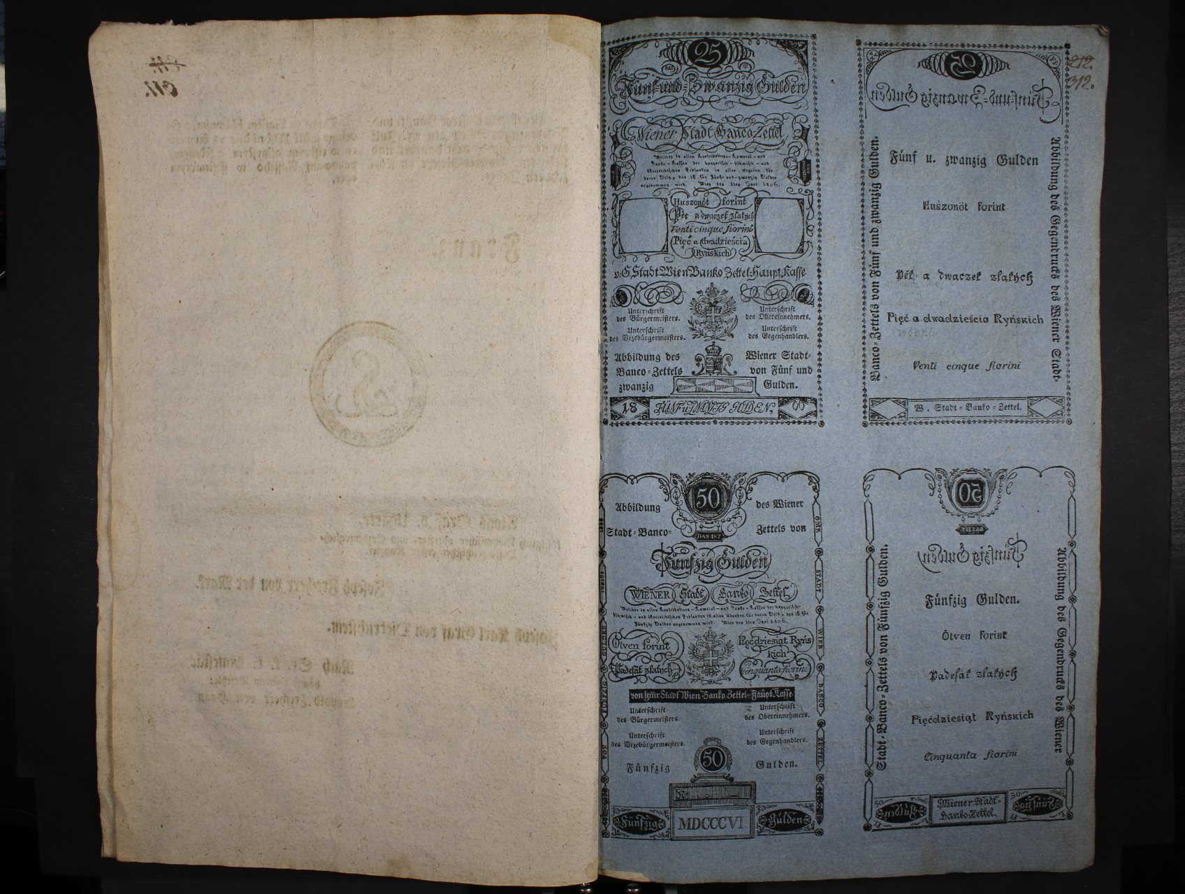 • císařský patent Františka I. z 23.7.1807 k vydání bankocedulí včetně formulářů 25, 50 / 100 Gulden 1.6.1806, Ri. 41 - 43 Fc