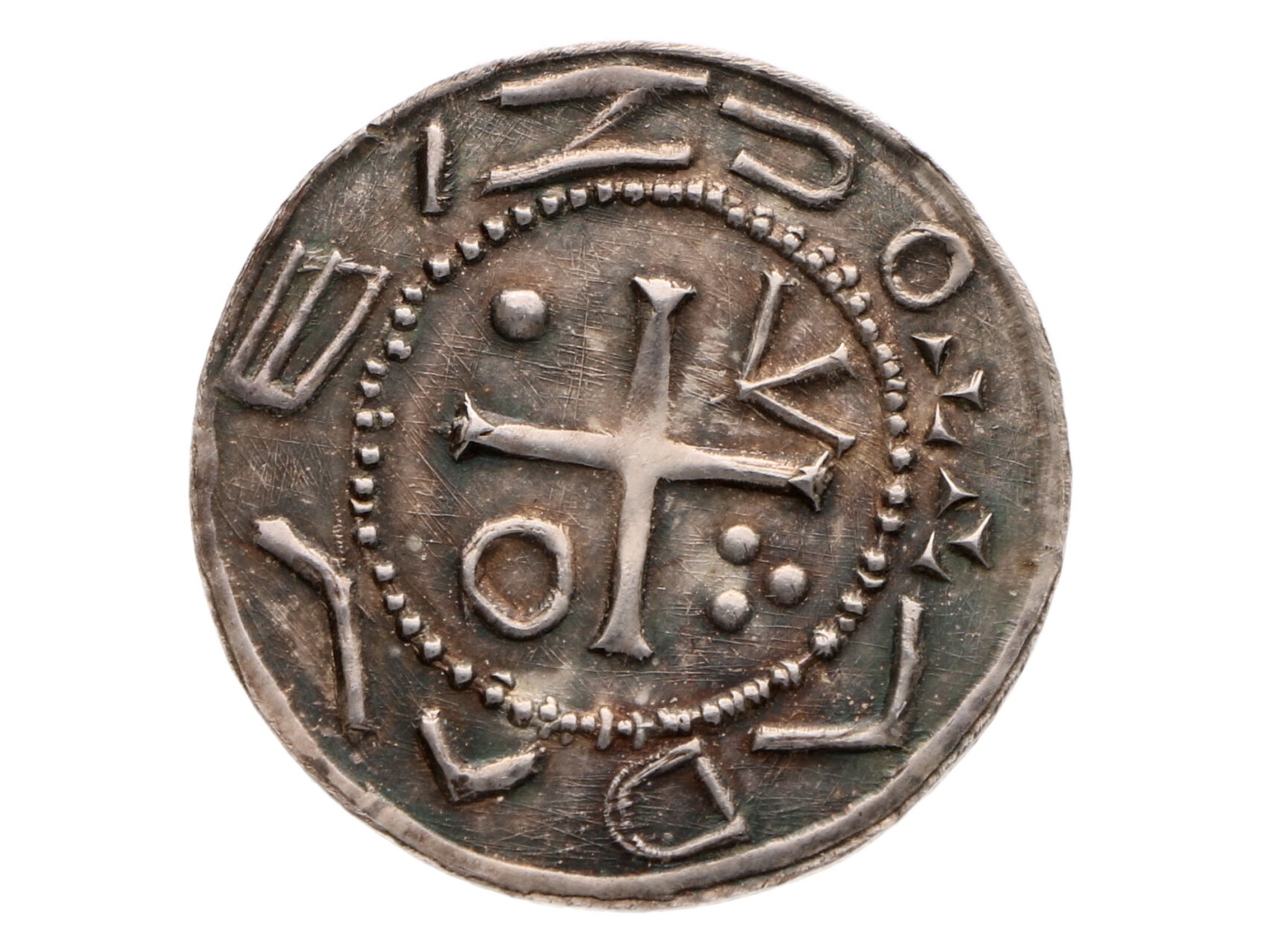 ČNS - pobočka v Brně - AR medaile 134. aukce pobočky, 1997. Napodobenina denáru pražského biskupa Vojtěcha Slavníkovce 982-997. Stříbro 0.960, 22,5 mm, 2,52 g., náklad 86 ks., nesignováno (P. Soušek)., F.A2/31a