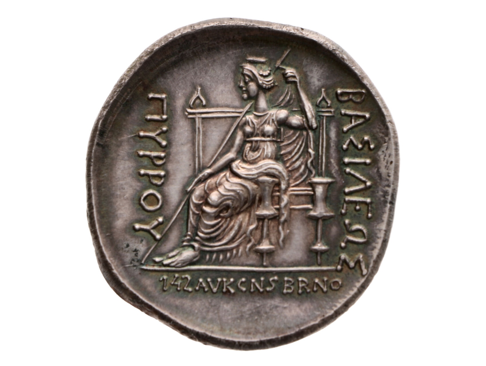 ČNS - pobočka v Brně - AR medaile 142. aukce pobočky, 2001. Napodobenina tetradrachmy italského města Lokroi Epizesyroi, ražená v letech 280-277 př. n. l. Stříbro 0.987, 32 mm, 16,45 g., náklad 66 ks., signováno (P. Soušek), F.A2/42b