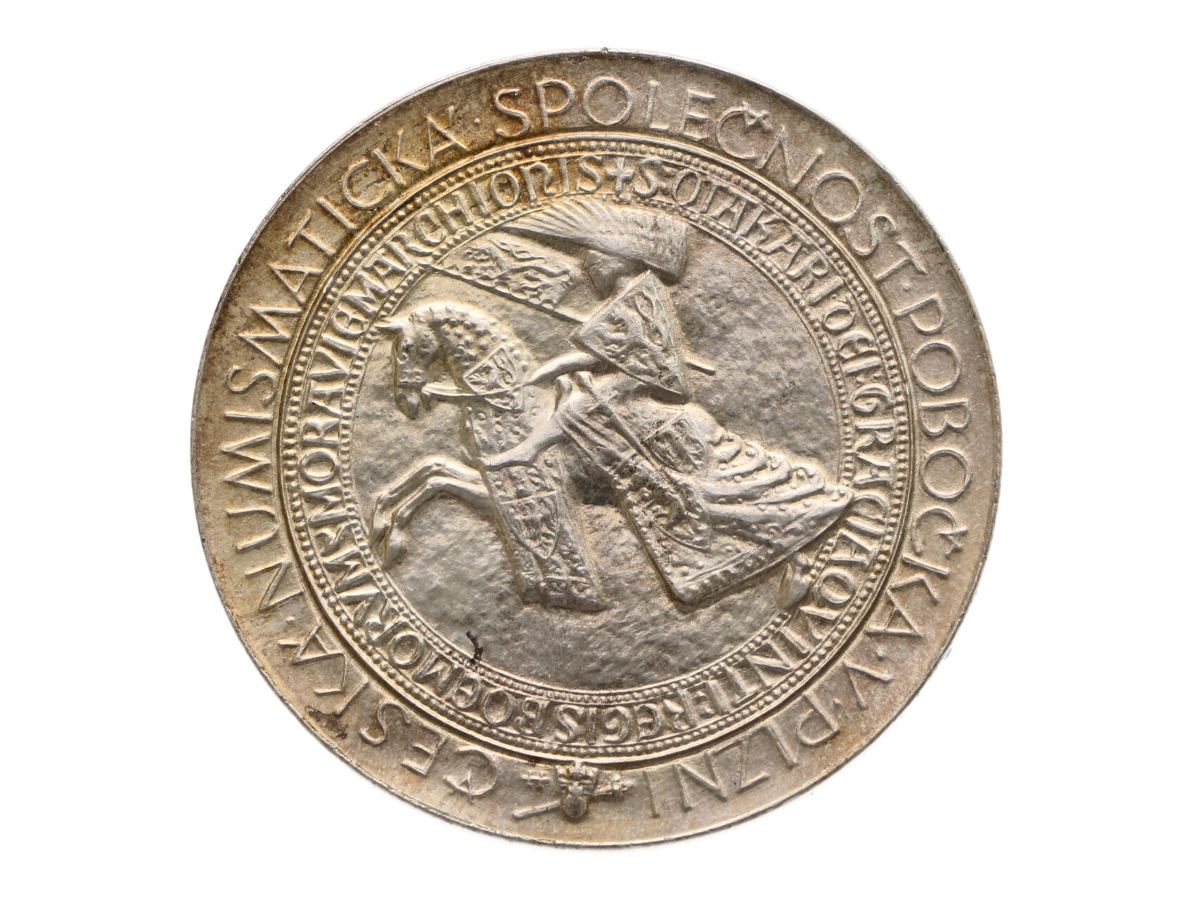 ČNS - pobočka v Plzni - AR medaile 1978, Přemysl Otakar II. Portrét krále podle busty P. Parléře, opis / jezdecká pečeť krále z posledních let vlády s gotickým opisem, opis.. Stříbro 40 mm, 29,81 g, na hraně punc Ag, ryzostní značka 900 a značka výrobce MK, signováno Harcuba, raženo 10 ks, F.A28/6b