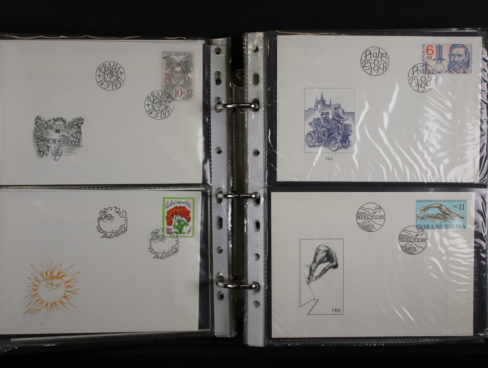 ČR - sbírka FDC obálek z let 1993-2002, kompletní ročníky, velmi pěkný stav, uloženo ve třech A5 zásobnícich na půlených listech, kat. cena Pofis 7900kč