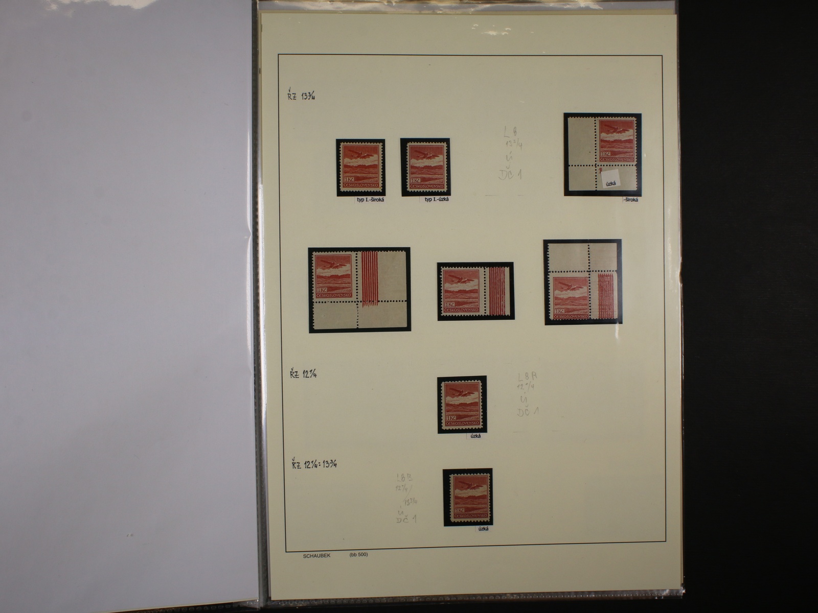 ČSR I - letecké III. emise 1930 - mírně specializovaná sbírka zn. L č. 7 - L 15 se zaměřením na typy, barvy, DZ, zoubkování A, B, C, (mimo zn. L 12 A, L 14 C), zajímavé, k prohlédnutí, kat. cena cca 11000 Kč, uloženo na listech s popisem v Hewidkách v tuhých deskách
