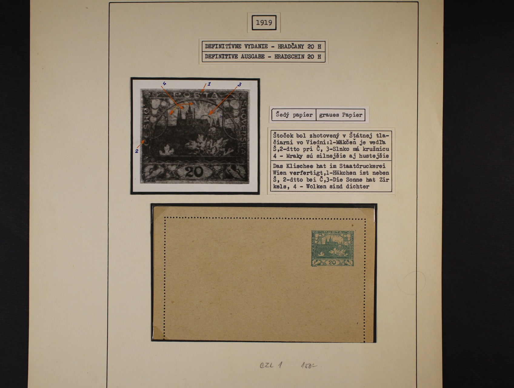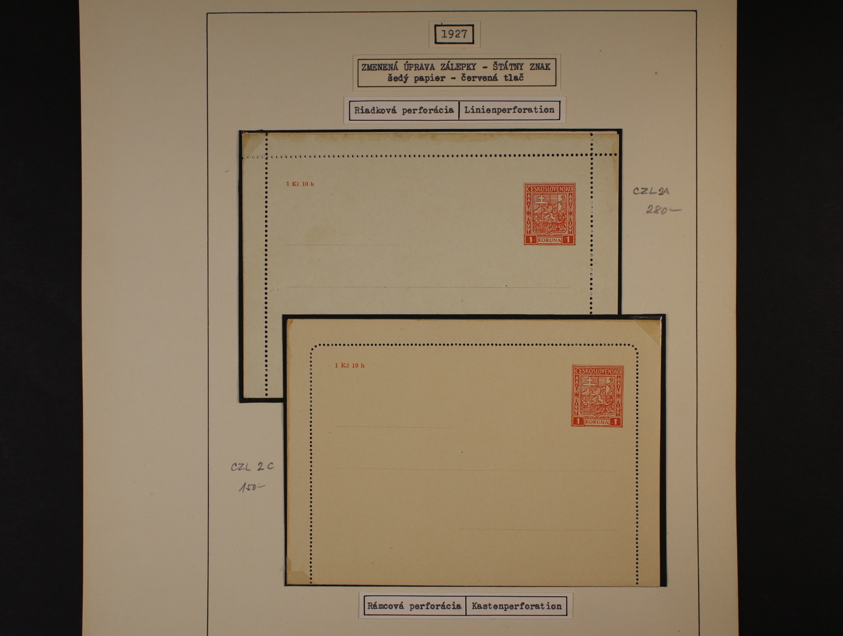 ČSR I - malá sbírka celin CZL 1 (2x použitá, 1x nepoužitá), CPO 1, CPO 2, typ II, CPO 3, CZL 2 A (2x), zajímavé, uloženo na listech s popisem v růžových deskách