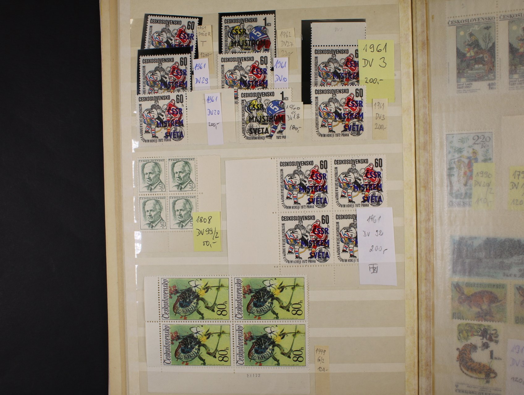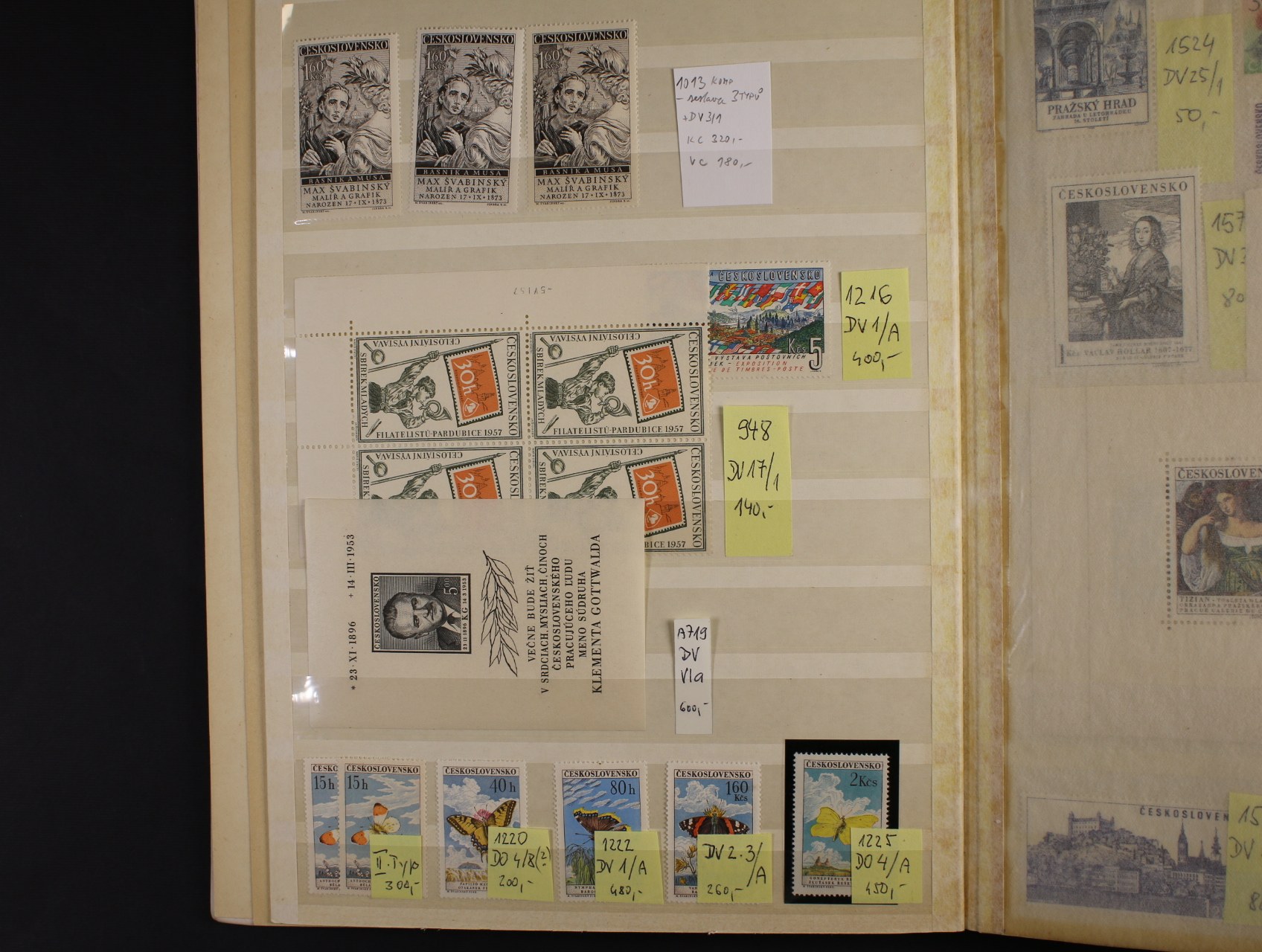 ČSR II. - sbírka zn. specializovaná na DV, typy, VV, odchylky papíru, atd. Obsahuje např. zn. č. 650 DV90/1, 1013 všechny tři typy,2x 1574 DV3/2, 1928 papír oz, 1961 DV21. Velmi pěkný stav, uloženo v zásobníku A4. Kat. cena přes 30000kč.
