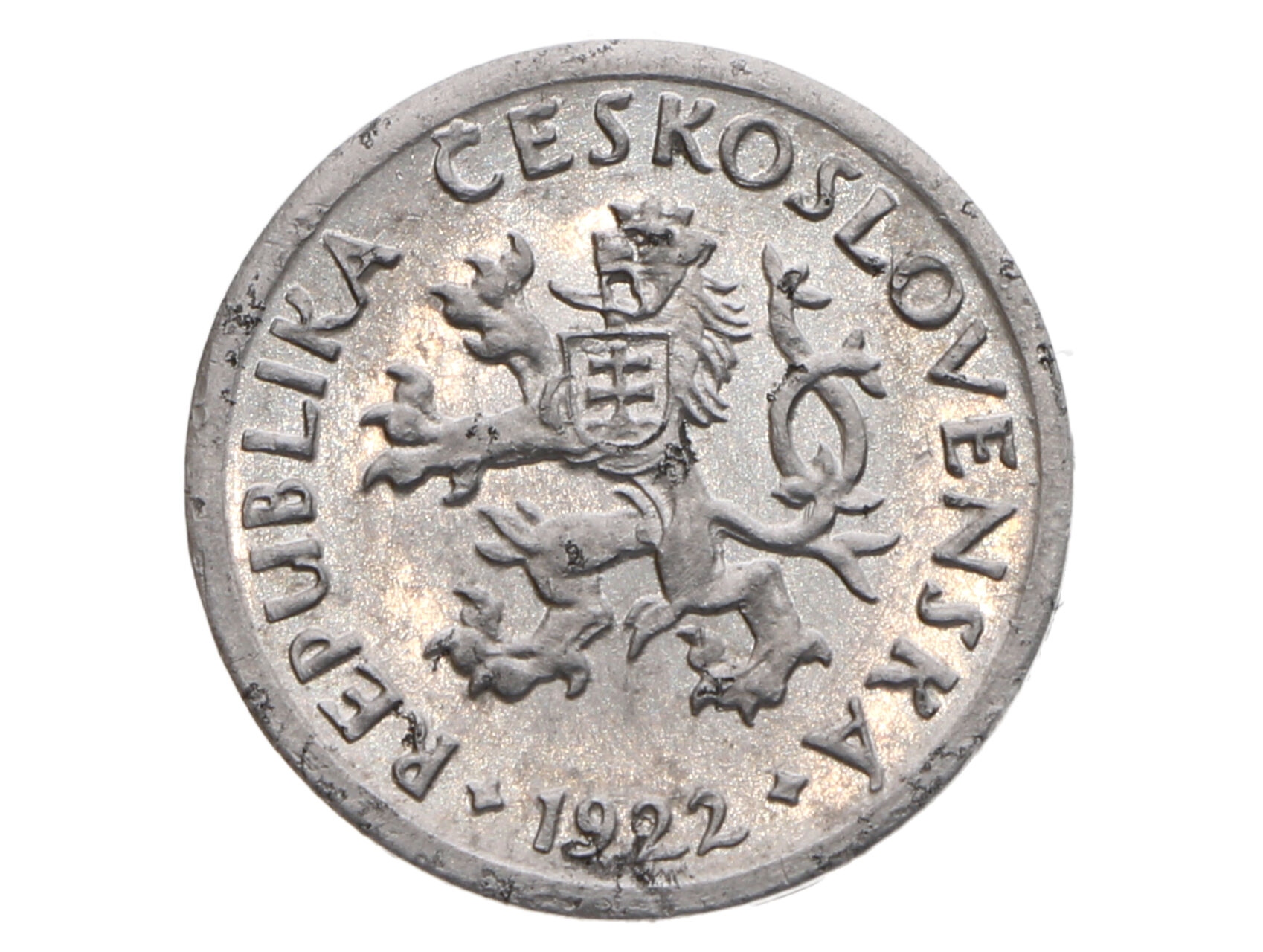 ČSSR 1945-1953 - 2 Haléř 1922, zkušební ražba Kremnica, průměr 18 mm, Al, O.Španiel, první odražek v návrhu měnové soustavy 1945, Chlapovič 72, 139, velmi vzácný