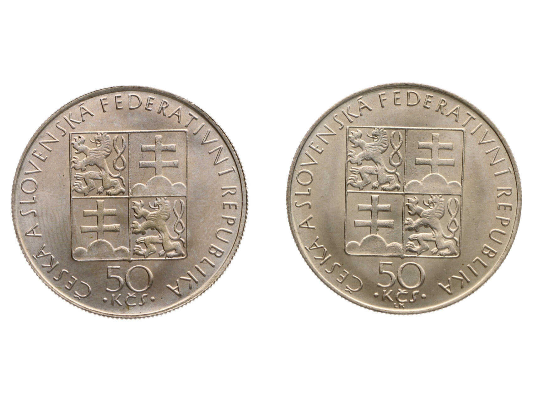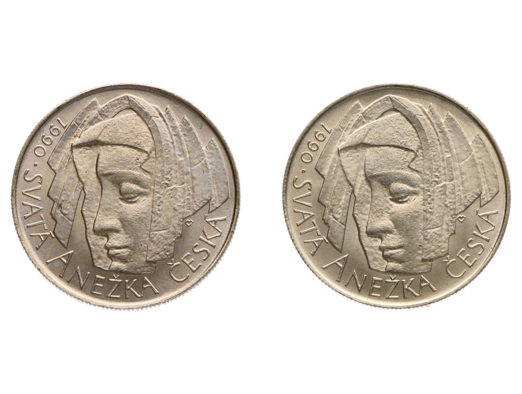ČSSR 1953-1992 - 50 Kčs 1990, První výročí svatořečení Anežky České, obě varianty, bez signatury autora "LK" i se signaturou, N 181, 181v, Aurea 184, 184v, 2 kusy
