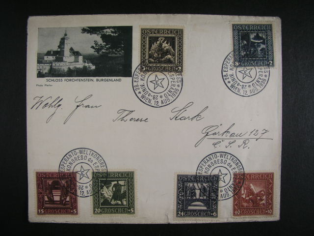 • Esperanto Rakousko - celistvost do CSR s pod. raz. 28.ESPERANTO - WELTKONGRES WIEN 12.AUG.1936