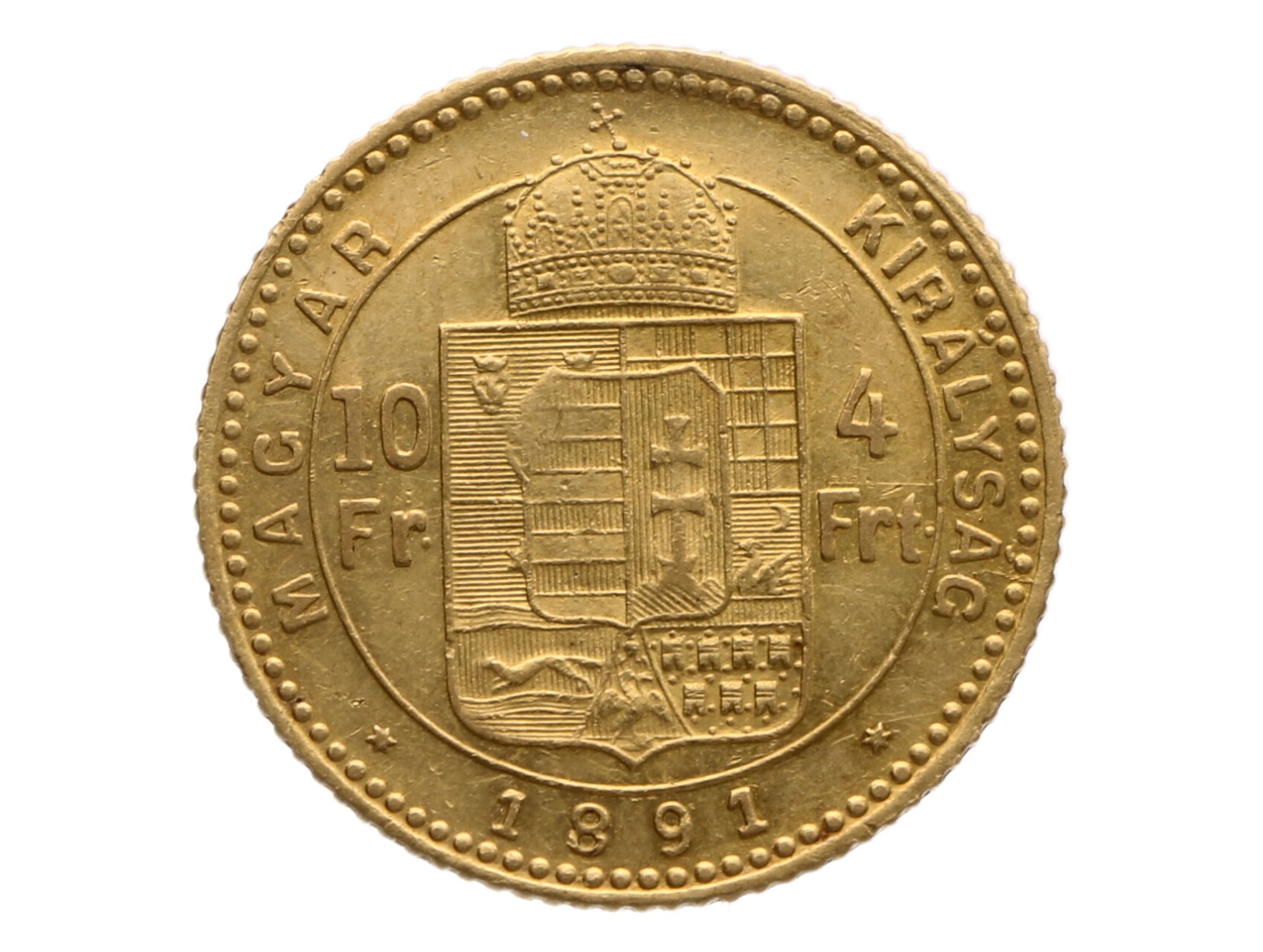 František Josef I. 1848-1916 - 4 Zlatník 1891 K.B. se znakem Fiume, N 125, Aur. 94