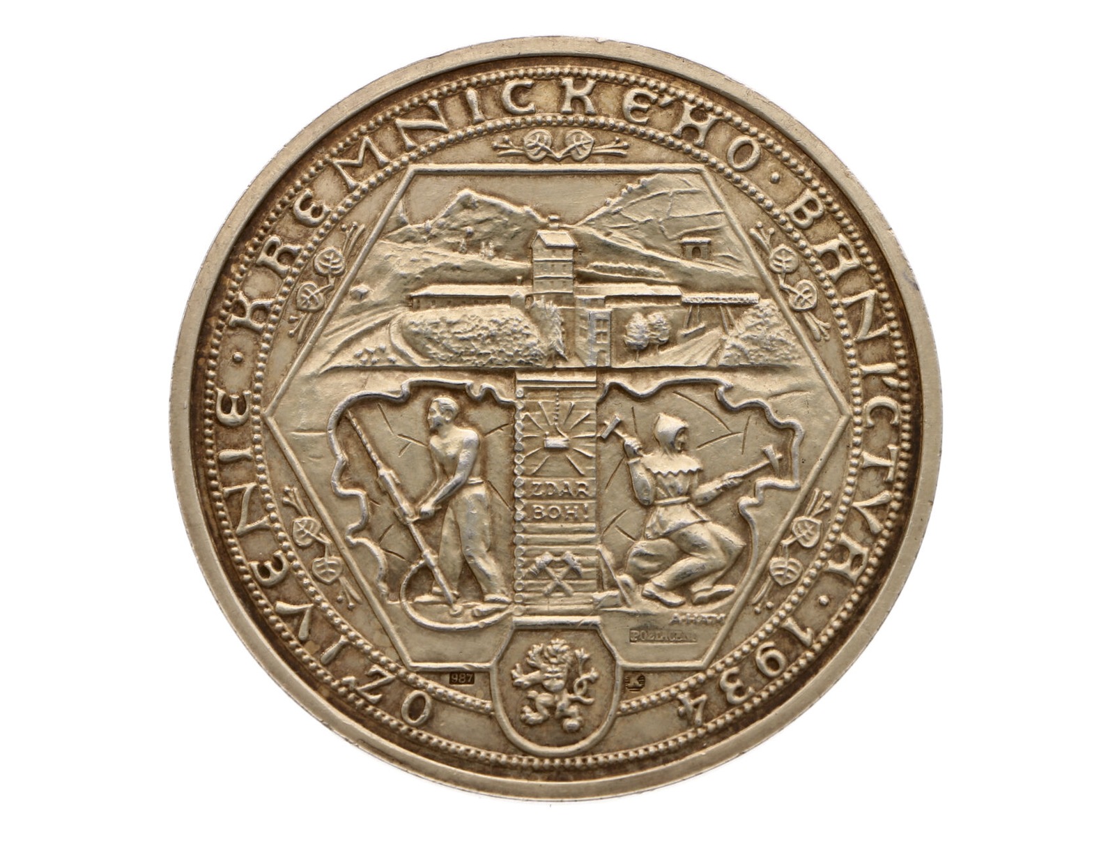 Hám Anton 1899-1965, AR medaile Oživení Kremnického banictva 1934, pozlacené stříbro, průměr 40 mm, var. označení POZLACENO, N VI.E var., Aur. M10e var.