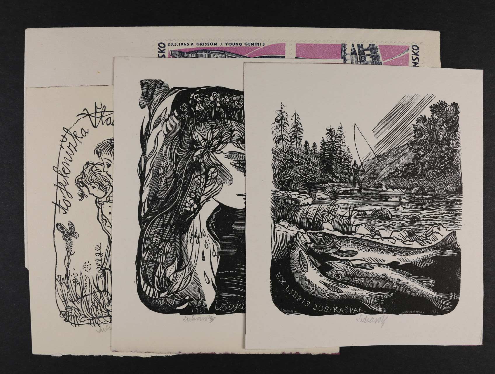 • Lukavský - sestava 3 ks EX-LIBRIS + dvě FDC kosmos s podpisy autora