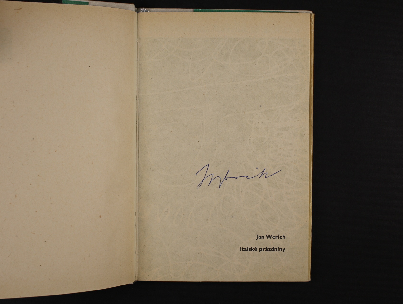 Osobnosti - Werich Jan, vl. jm. Křtitel František Serafinský, 1905 - 1980 - význačný čs. herec, komik, scénárista - publikace ITALSKÉ PRÁZDNINY, autor Werich, vydal Čs. spisovatel 1960, s vlastnoručním podpisem