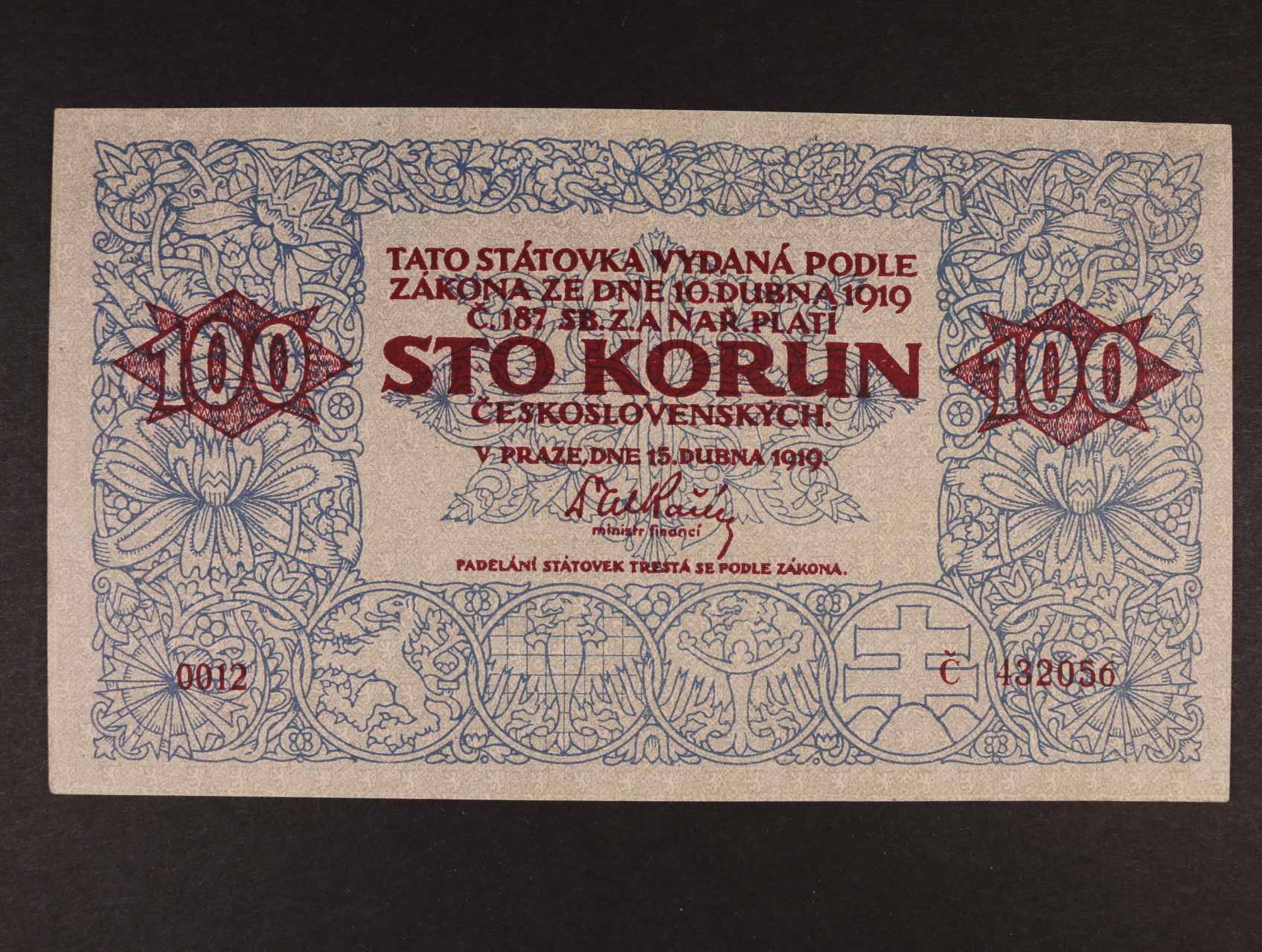 • padělek, 100 Kč 15.4.1919 série 0012, dobový tištěný padělek, nezachycený typ Meszaros