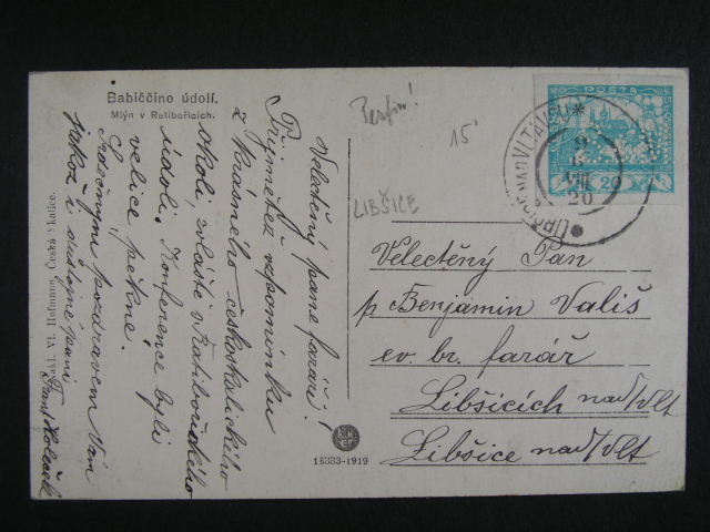 • Perfiny CSR - celistvost frank. zn. c. 8 s identifikacnim perfinem S& M, pod. raz. URCICE NAD VLTAVOU 9.6.20
