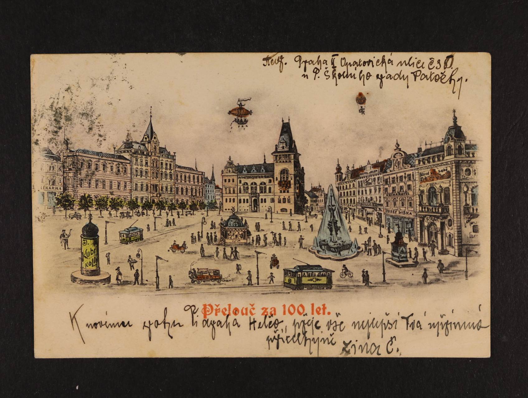 Přelouč budoucnosti - bar. pohlednice, dl. adresa, použitá