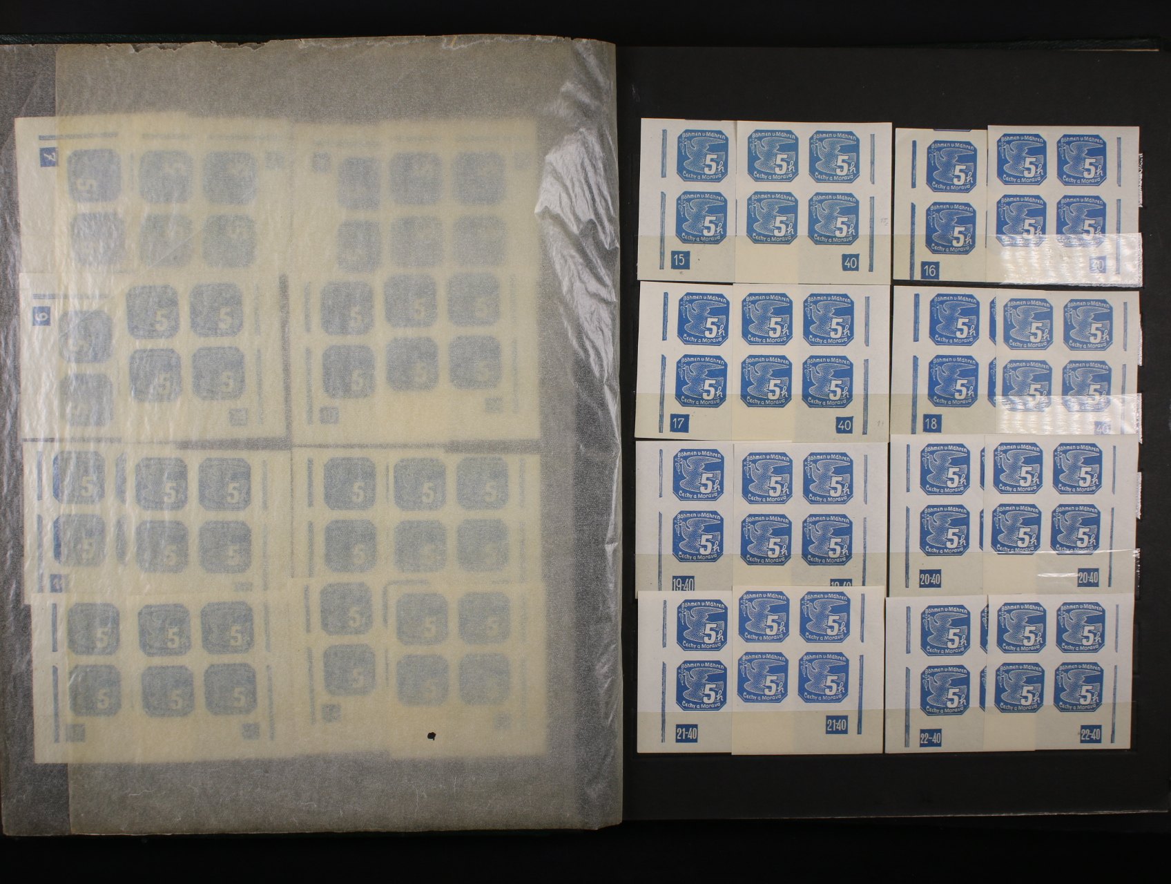Protektorát - specializovaná neúplná sbírka zn. Nv 1 - NV 9 ve čtyřblocích s DZ, mj. NV 2 s DZ 1 39 široký rám + dtto úzký rám, DZ 2 39 široký rám + dtto úzký rám, kat. cena cca 38000 Kč, uloženo v zásobníku A 4