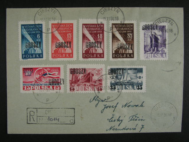 • R-dopis do C. Tesina frank. zn. Mi. c. 592 - 99, pod. raz. CIESZYN 15.11.50