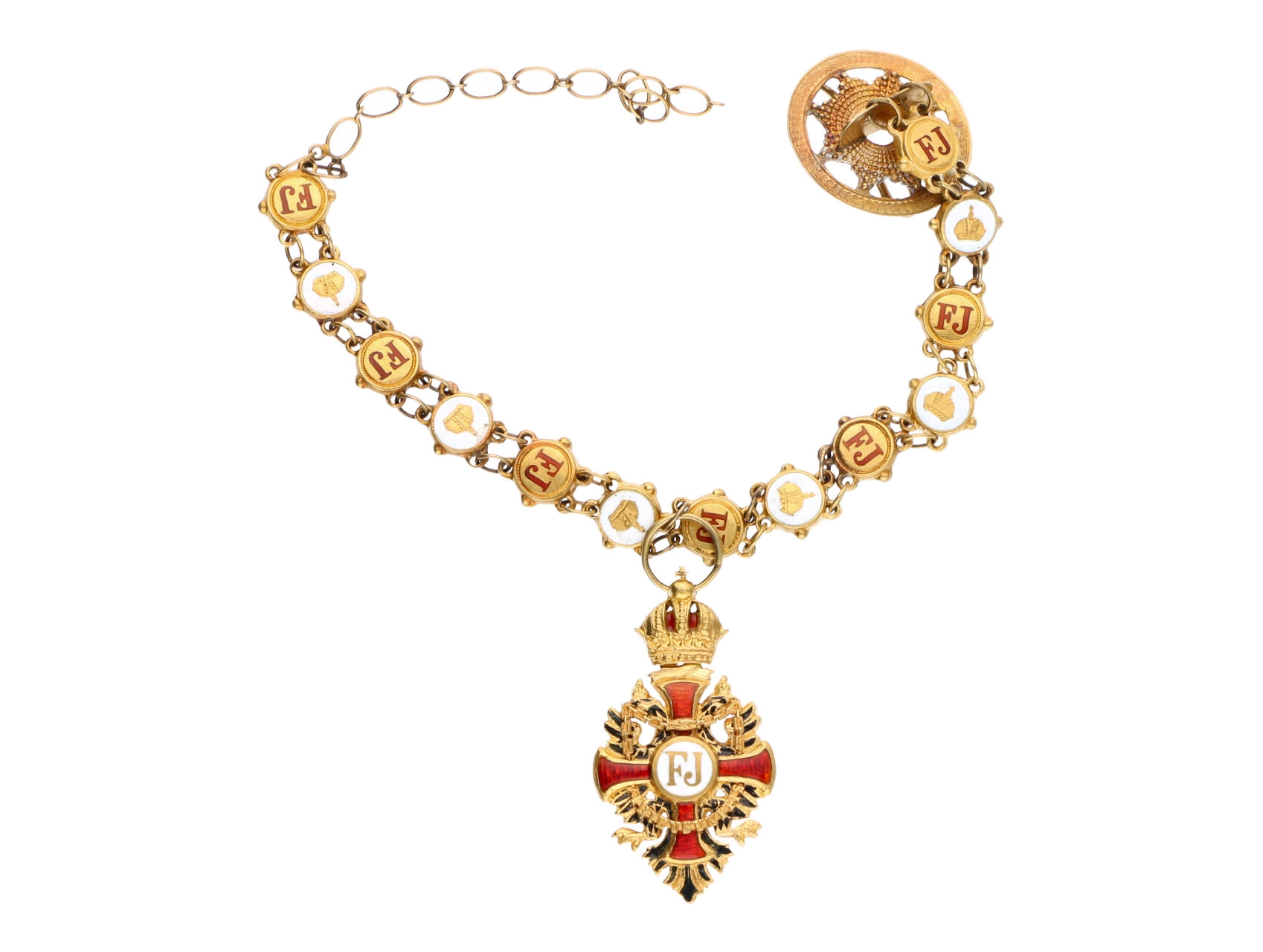 Řádový řetízek Řádu Františka Josefa I. s miniaturou řádu, punc Au, M099d
