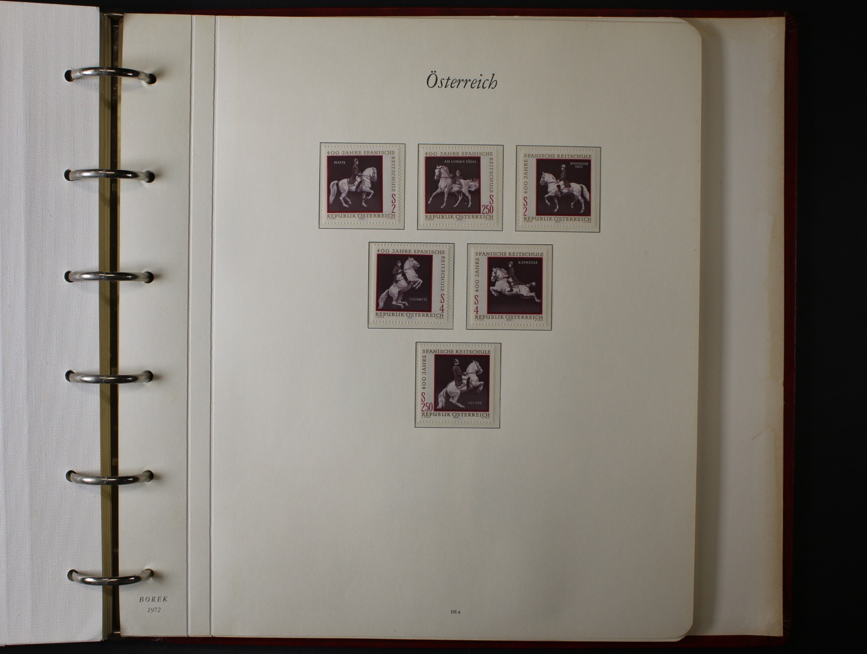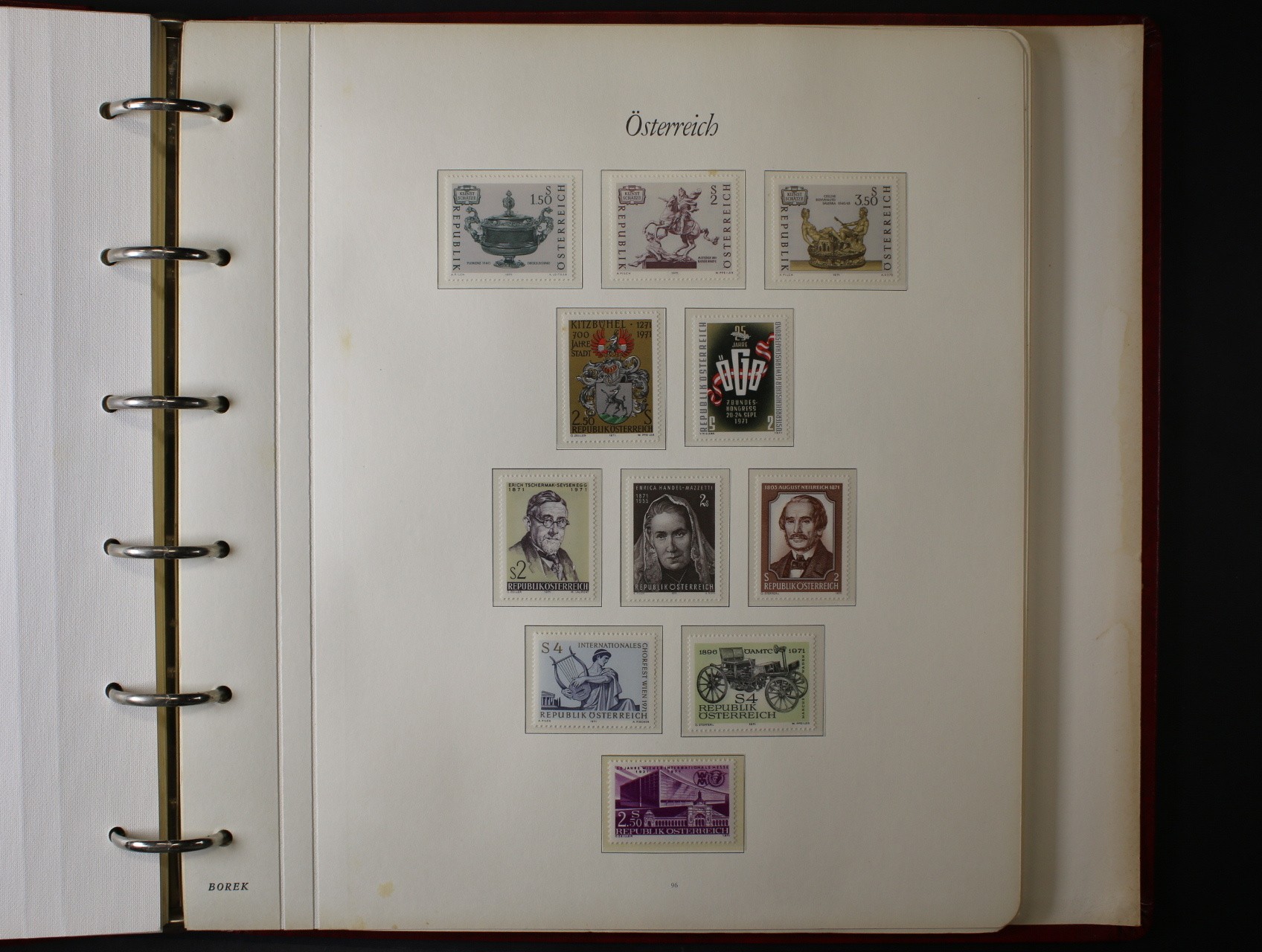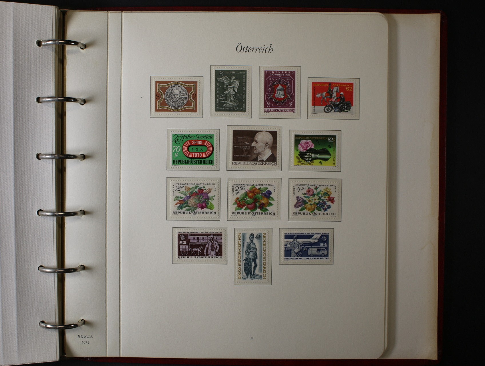 Rakousko - nekompl. sbírka zn. z let 1968 - 1979 vč. aršíků, kat. cena cca 300 EUR, uloženo na zasklených listech Borek v červených luxusních mechanických deskách