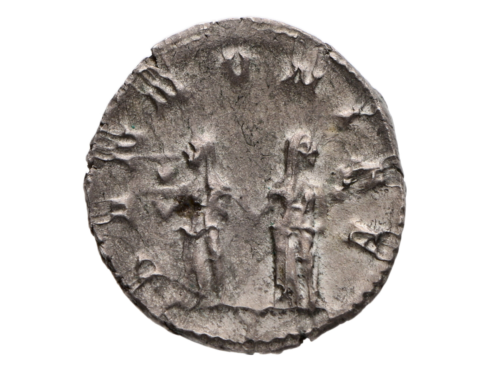 • Řím císařství, Traianus Decius 249-251 - AR-Antoninian. Hlava panovníka s paprskovitou korunou vpravo, IMP C M Q TRAIANVS DECIVS AVG / Dvě stojící Pannonie, PANNONIAE. 4,00 g., RIC 5, Kamp.79.8.2