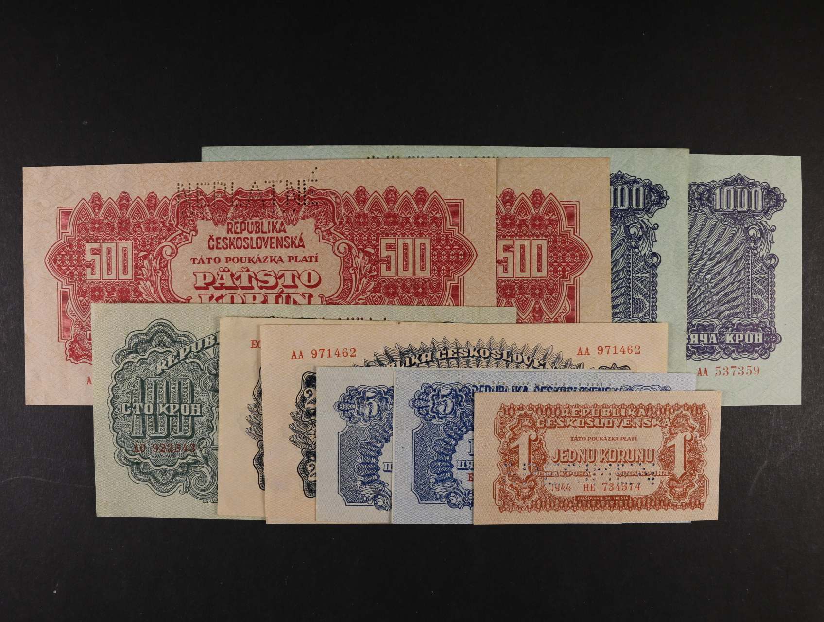 • sada bankovek s perforací SPECIMEN - 1 K 1944, 5 K 1944 svislý a vodorovný pod., 20 K 1944 (2x), 100 K 1944, 500 K 1944 (2x NEPLATNÉ), 1000 K 1944 (2x) celekm 10ks
