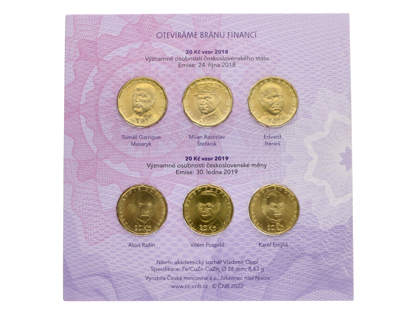 • Sada oběžných mincí z r. 2018/2019 BJ - reprezentační sada ČNB, variata růžový tisk s vystouplou rubovou stranou pamětních 20 Kč