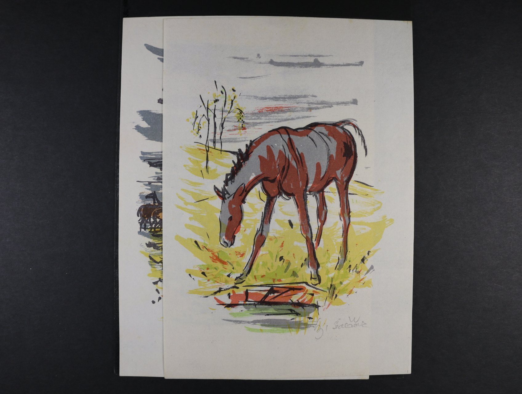 Sedláček - dva barevné graf. listy s námětem koně - litografie formátu A4 s vlastnoručním podpisem