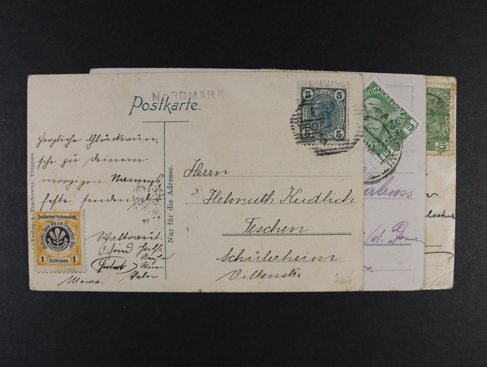 • sestava 17 ks celistvostí (převážně pohlednic) z let. 1900 - 1920 z území Čech a Moravy, dofrankované různými spolkovými a příspěvkovými zn.