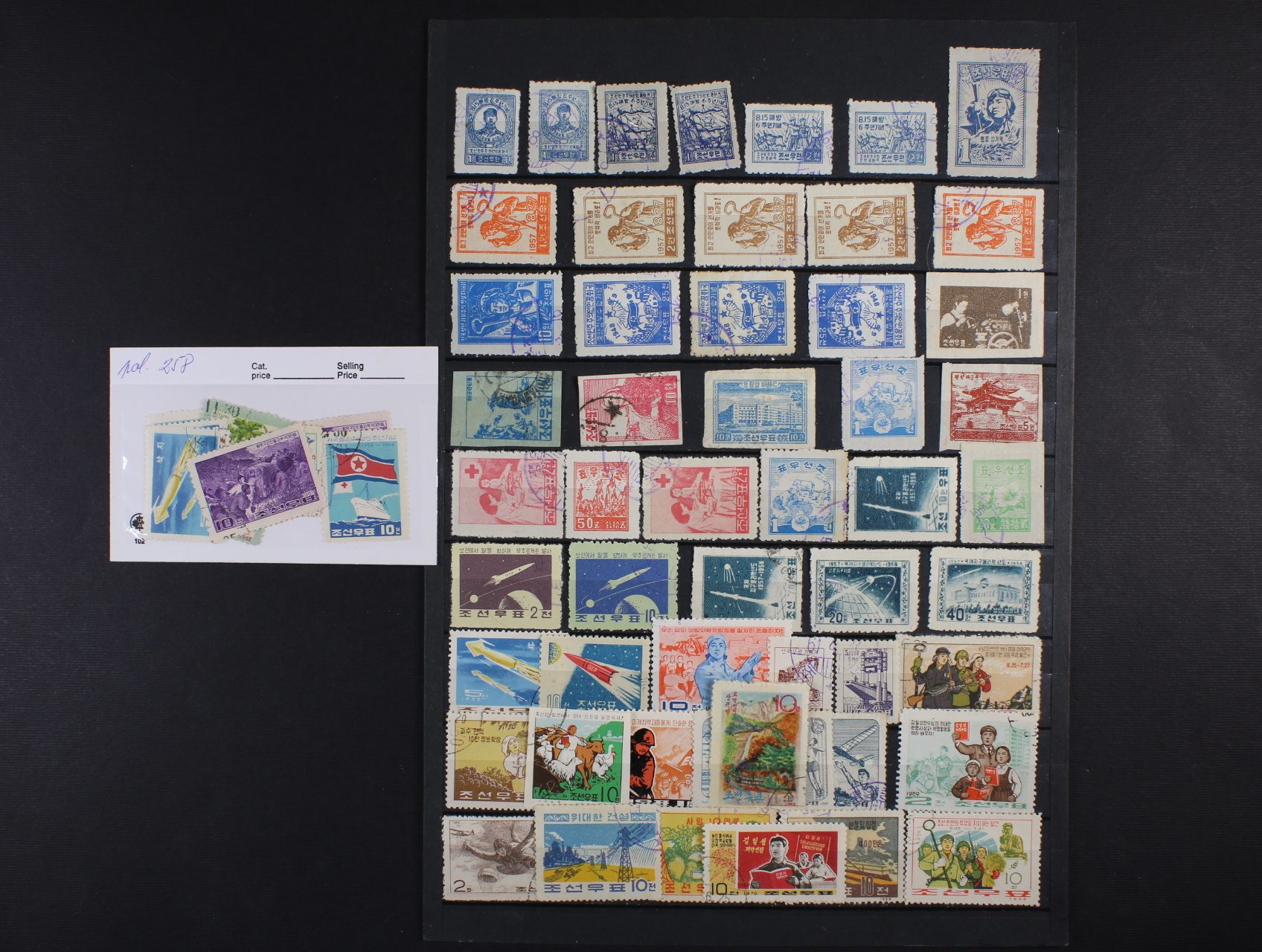 • Severní Korea - sestava cca 100 ks zn. a výstřižků převážně razítkovaných