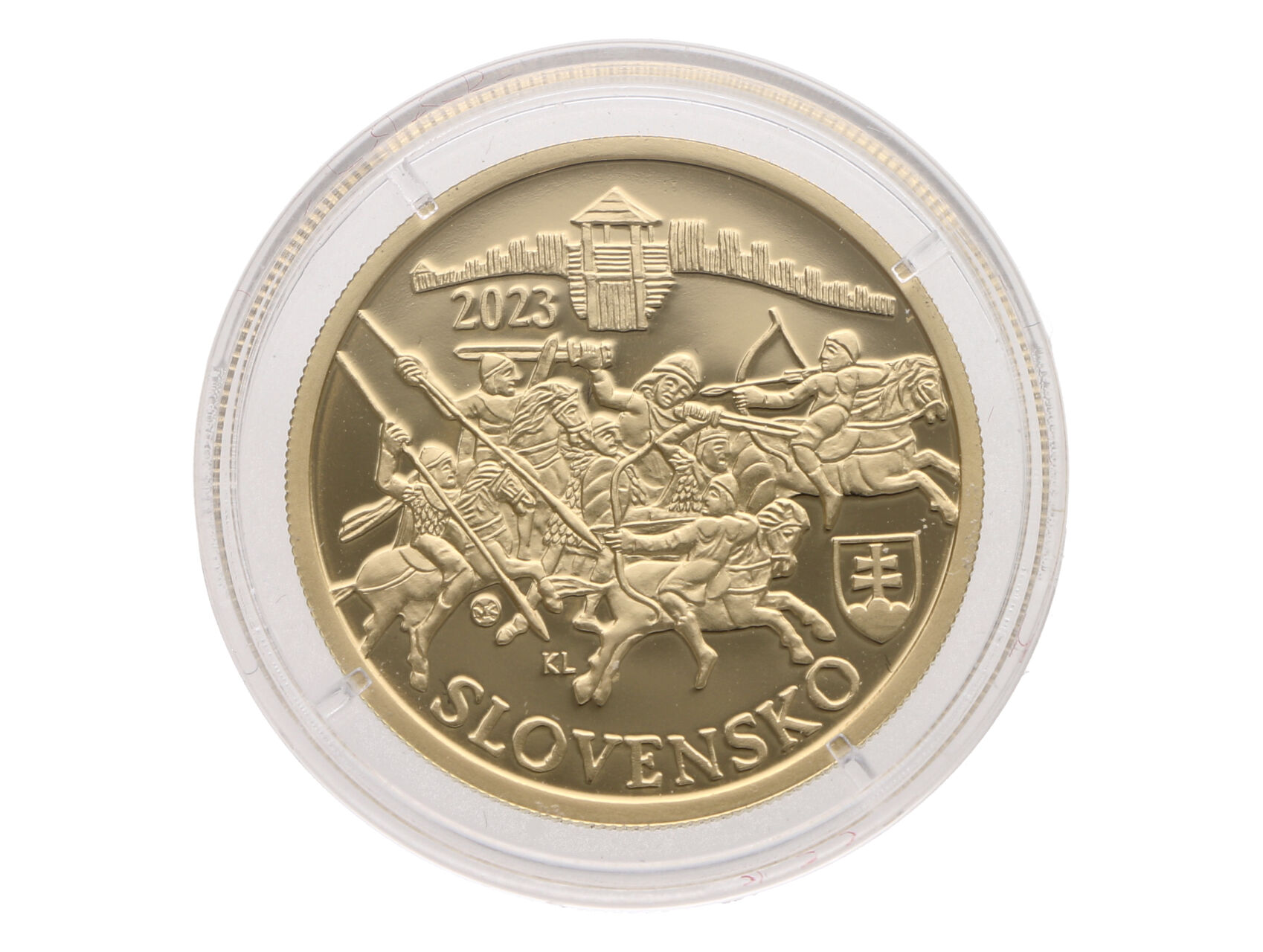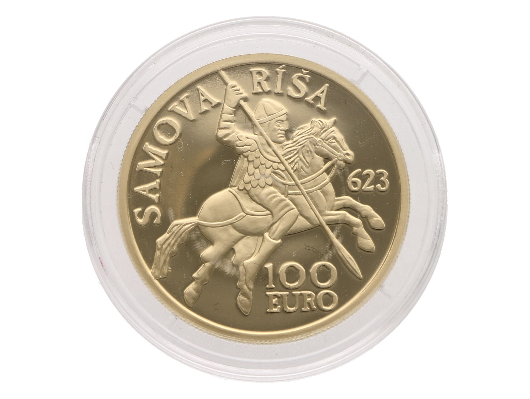 Slovenská republika 1993 - 100 Euro 2023 1400. výročí vzniku Sámovy říše, 9.5 g, Au 900/1000, etue, certifikát, leták NBS, N SKSb Z14