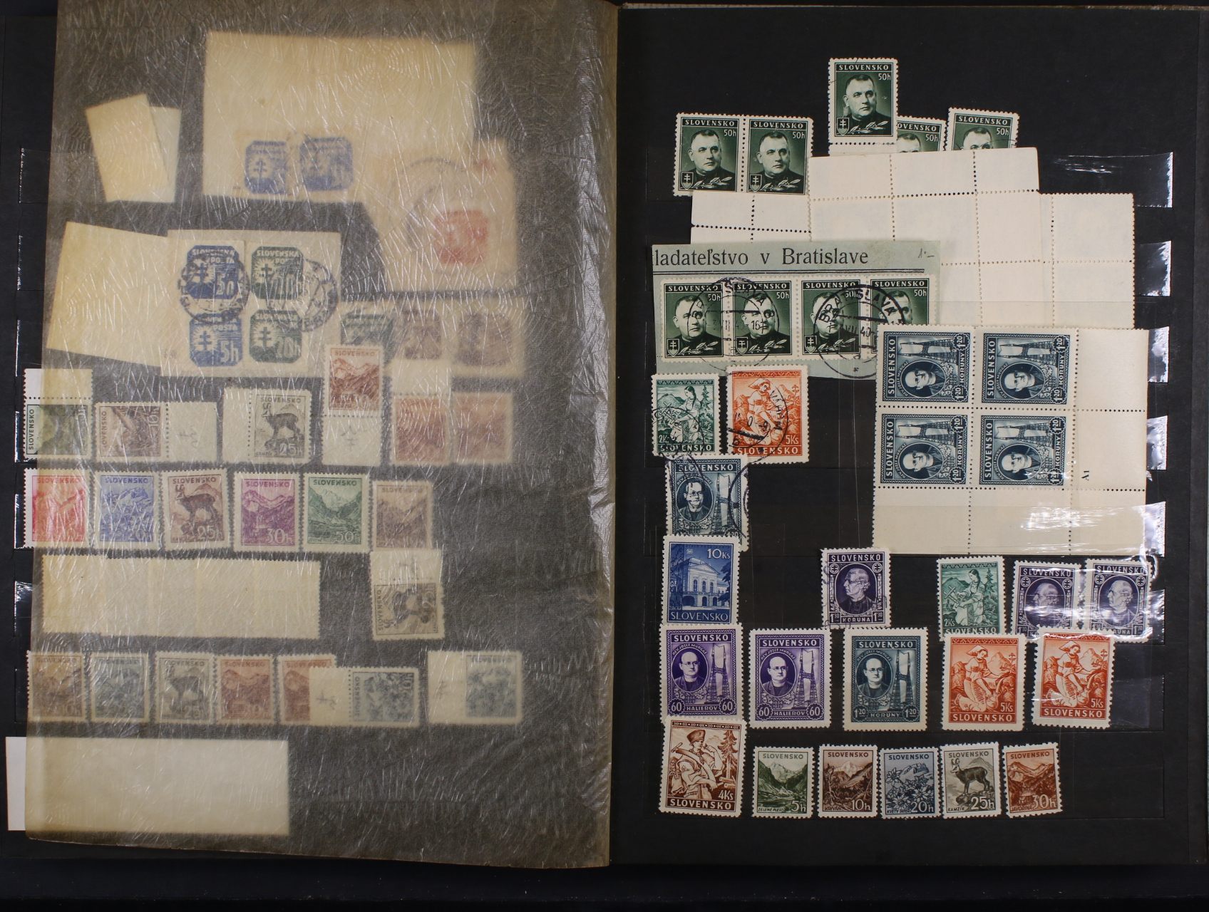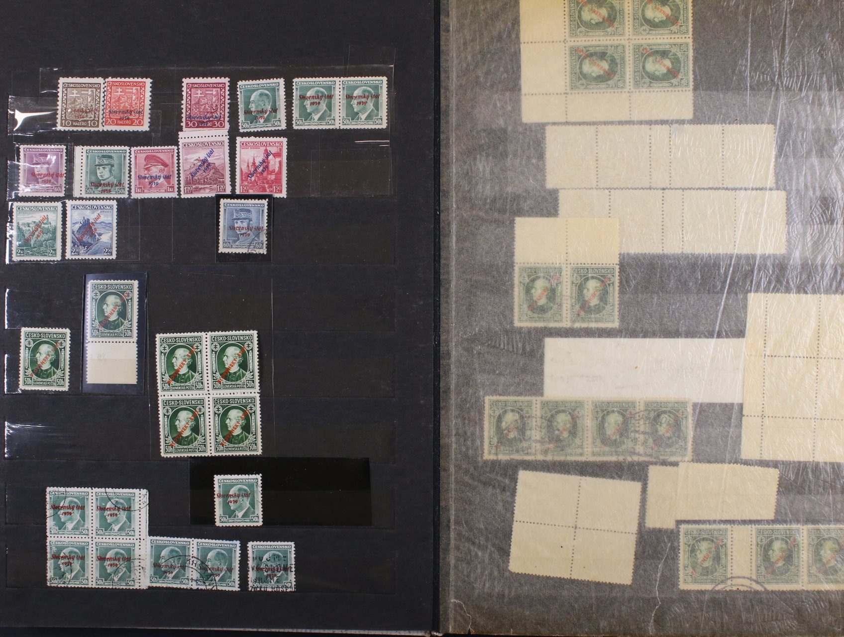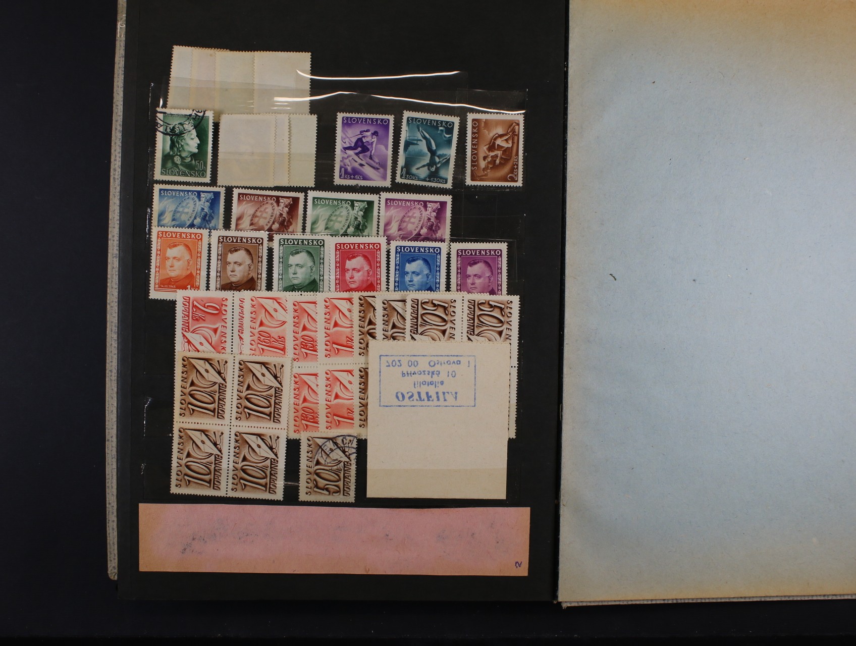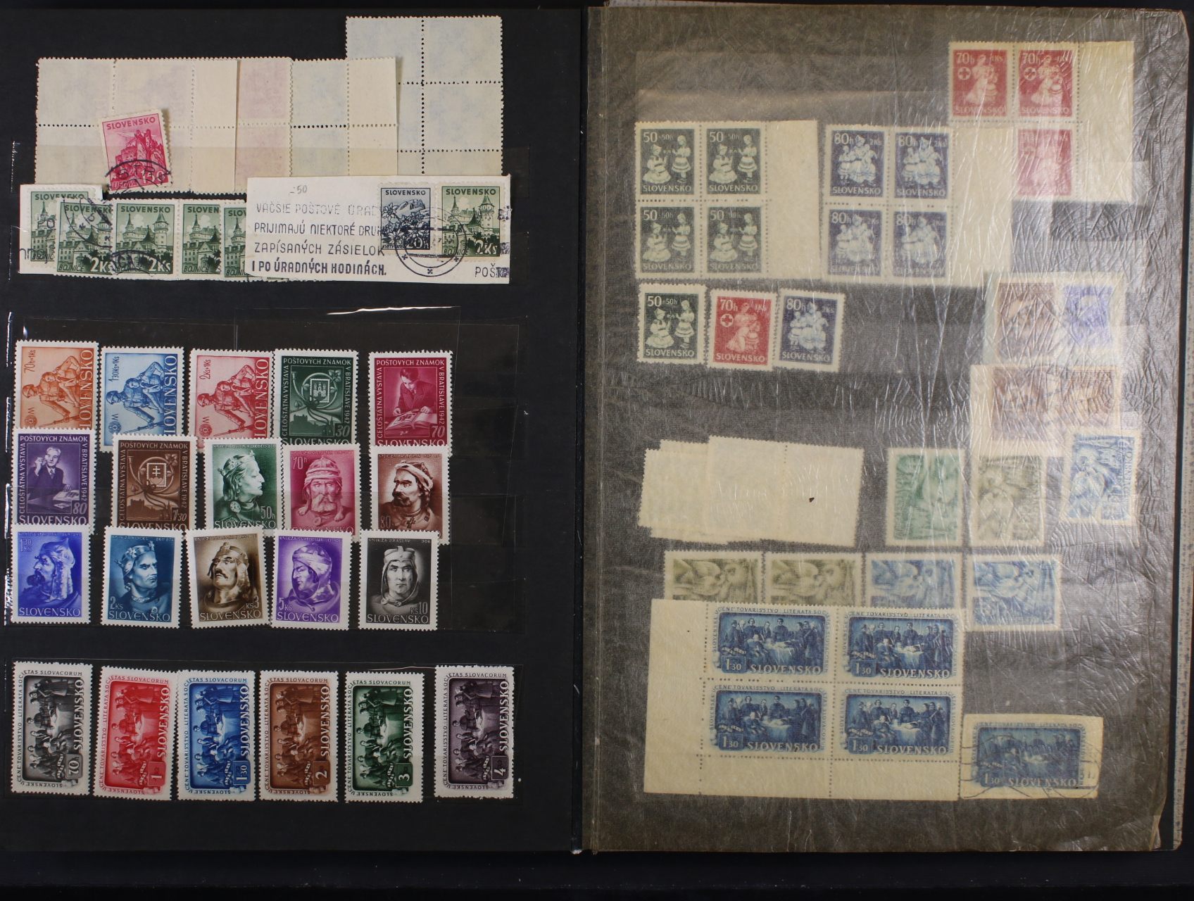 Slovensko - menší nekompl. sbírka zn. se zaměřením na čtyřbloky, DČ, část zn. bez lepu (nezapočítány), kat. cena cca 200 EUR, uloženo v šedém zásobníku A4