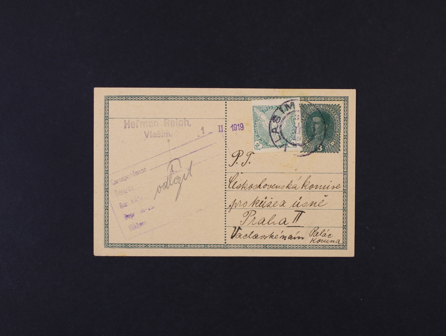 • Souběžné - rak. KL 8h Karel dofrank. zn. NV č. 1, pod. raz. VLAŠIM 30.1.19, velmi zajímavé, vzácné